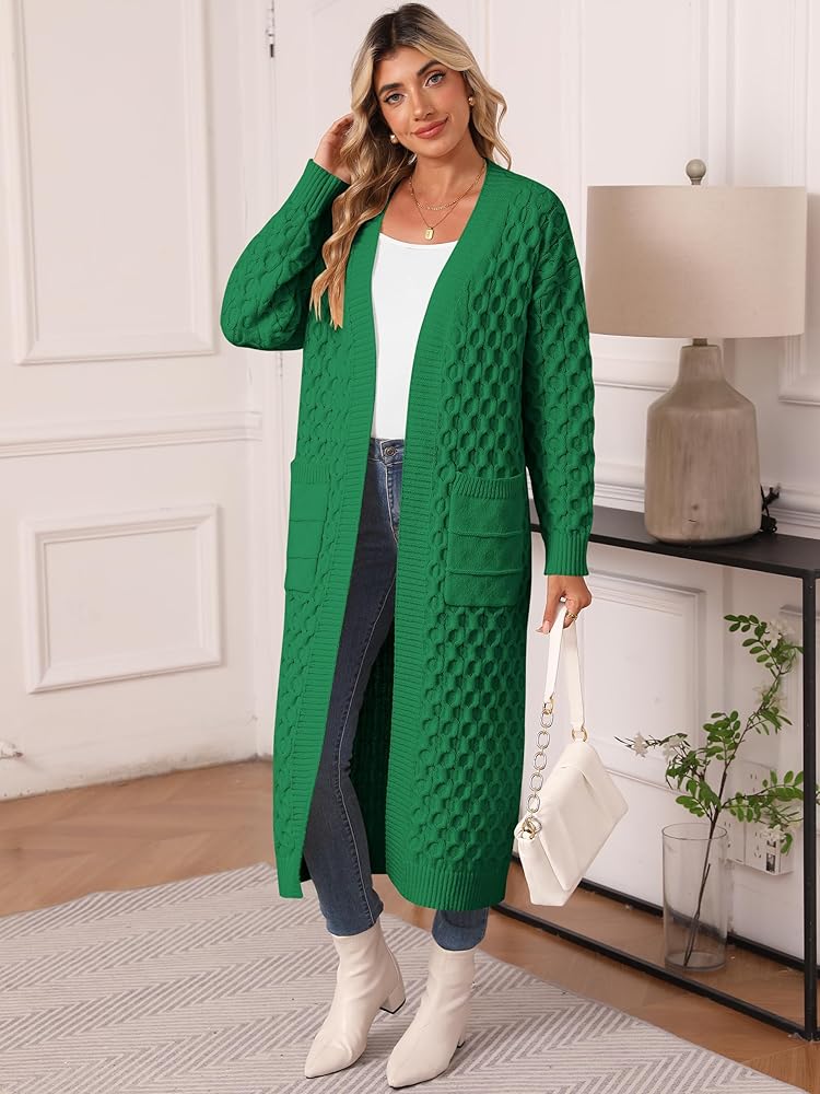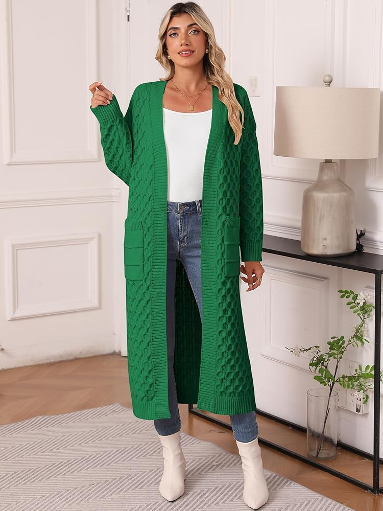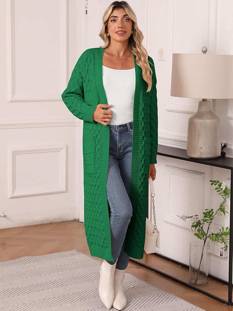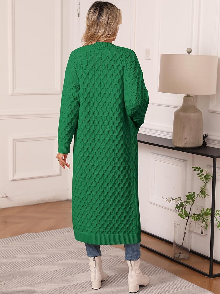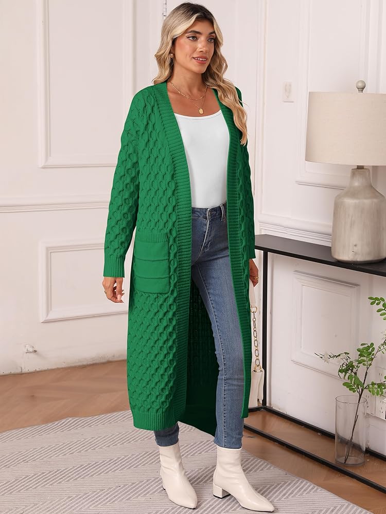 الميزات - تتميز غبار طويل منسوج بكابل للنساء بمقدمة مفتوحة، وأكمام طويلة، وطول يصل إلى الأرض، ونسيج كابل مكتنز، وأساور أكمام وحاشية مضلعة، ولون ثابت، وجيوب على كلا الجانبين، وحجم إضافي، وفضفاض. معطف خارجي متماسك دافئ في الخريف يخلق صورة ظلية مترهلة وغير رسمية