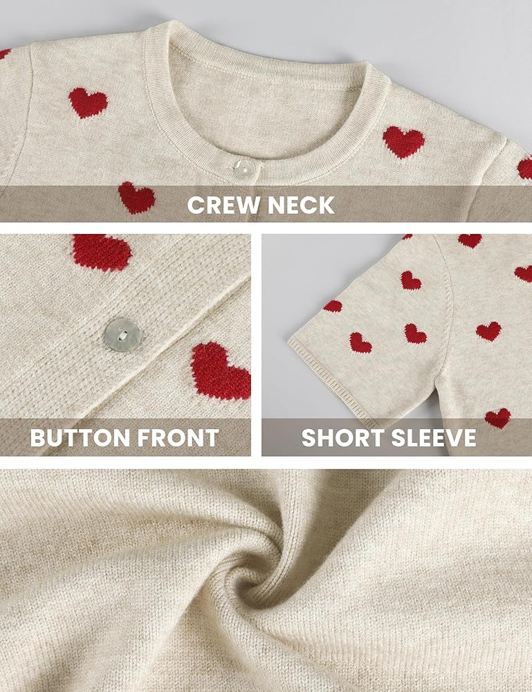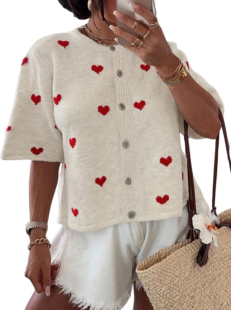 السمات: تتميز هذه السترة القصيرة الأكمام بطباعة قلب لطيفة مرحة في الأمام ولون ثابت على الظهر، مما يضيف لمسة جميلة إلى خزانة ملابسك