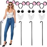 إكسسوارات زي الفأر: تتضمن 3 عصابات رأس لأذني الفأر، و3 نظارات شمسية سوداء مستديرة، و3 أزواج من القفازات البيضاء و3 عصي بلاستيكية قابلة للتعديل، وأزياء الهالوين اللطيفة المكونة من 3 أشخاص للمجموعة والعائلة لارتدائها في الحفلات