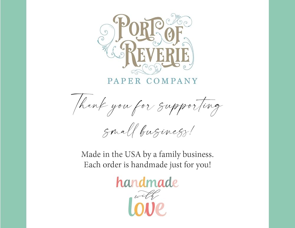 • حجم البطاقة: A2، 4.25 بوصة × 5.5 بوصة مطوية، 8.5 بوصة × 5.5 مفتوحة. مصنوعة يدويًا في الولايات المتحدة الأمريكية بواسطة شركة عائلية صغيرة.