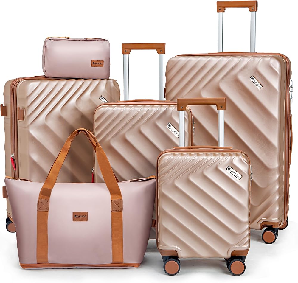 【High-Quality ABS Material】Crafted from superior-quality and lightweight ABS material, the Rosamo suitcase set has an additional protective layer on the hard shell, significantly enhancing its impact resistance. This robust construction guarantees that your luggage can withstand the rigors of travel with ease while remaining effortless to handle.