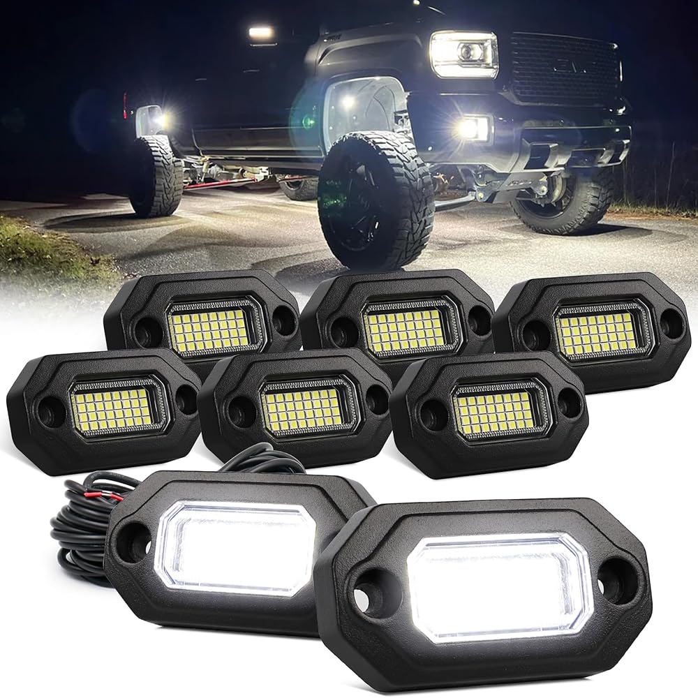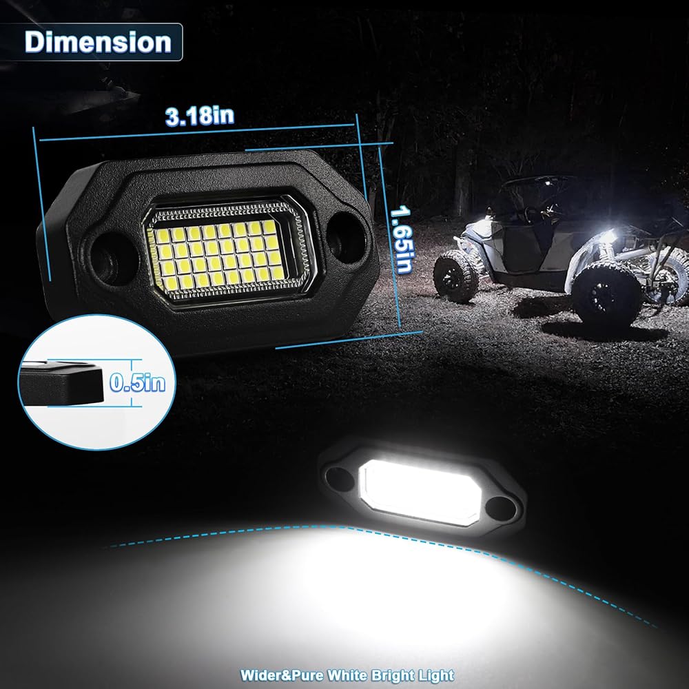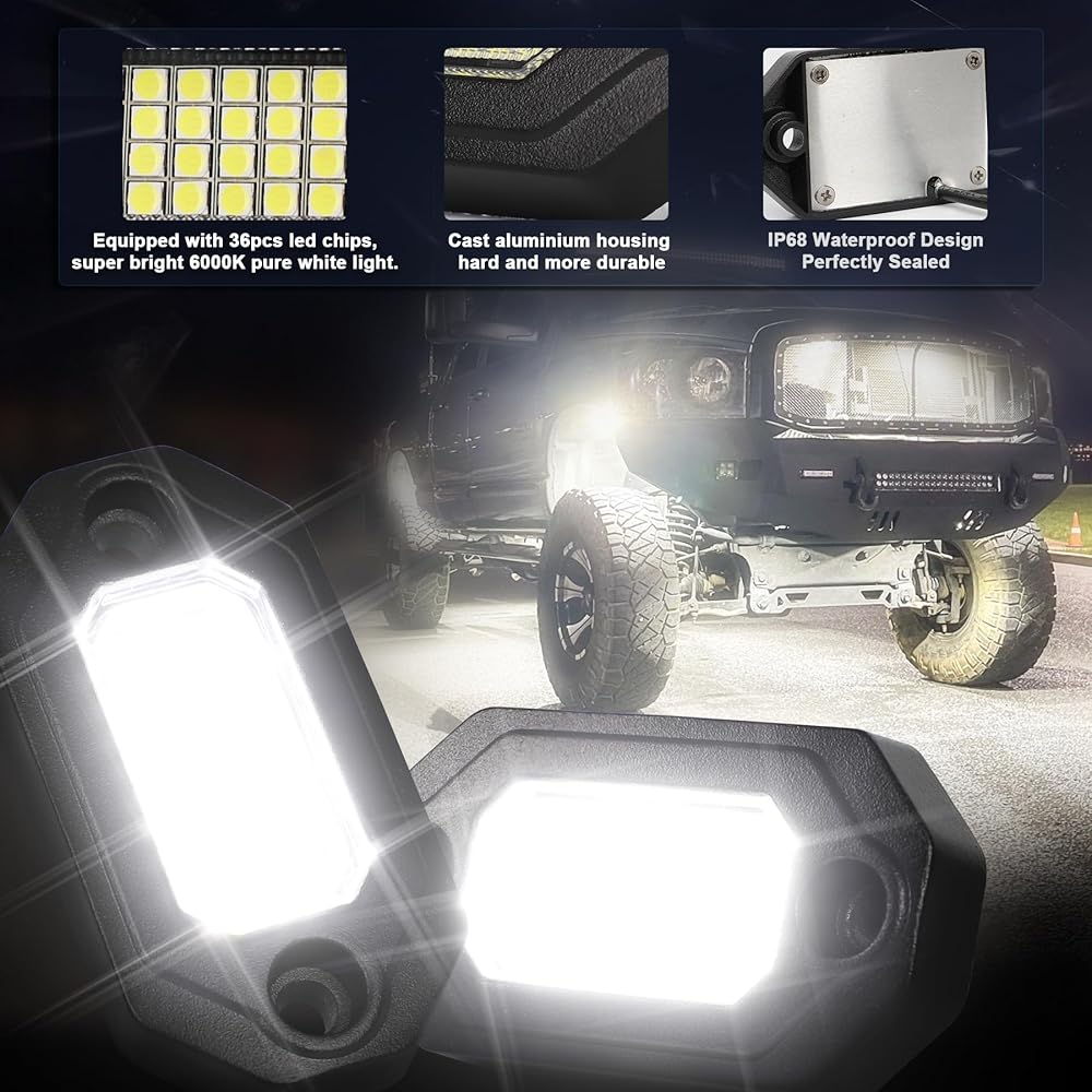 【يضيف إضاءة إضافية】يحتوي كل مصباح على 36 شريحة LED عالية الجودة، تضيء الهيكل السفلي لأي شاحنة أو جيب أو مركبة لجميع التضاريس، لا داعي للقلق عندما لا يكون هناك إضاءة خارجية للمساعدة في الرؤية في الملعب الأسود في البلاد،