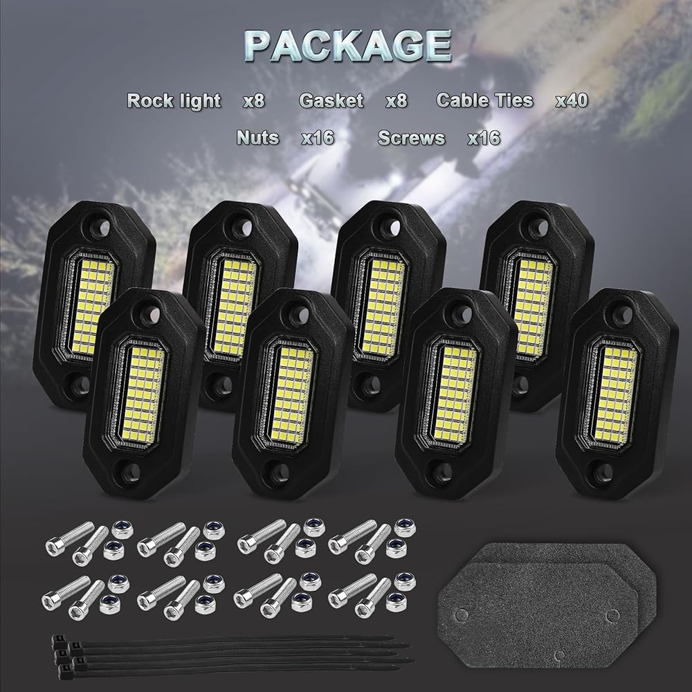 【سهلة التركيب وتستخدم على نطاق واسع للزحف على الصخور، وخلجان المحرك، وآبار العجلات، وأسرّة الشاحنات، والشوايات، والمصدات...، تتضمن مجموعة أدوات الإضاءة المتوهجة جميع الملحقات اللازمة للتثبيت، وتأتي مع مسامير، وروابط بسحاب، وأكثر من ذلك، لمركبات Truck Jeep Car SUV Off Road وATV UTV RZR وعربات الجولف الأخرى مع مصادر طاقة 12 فولت - 24 فولت تيار مستمر.