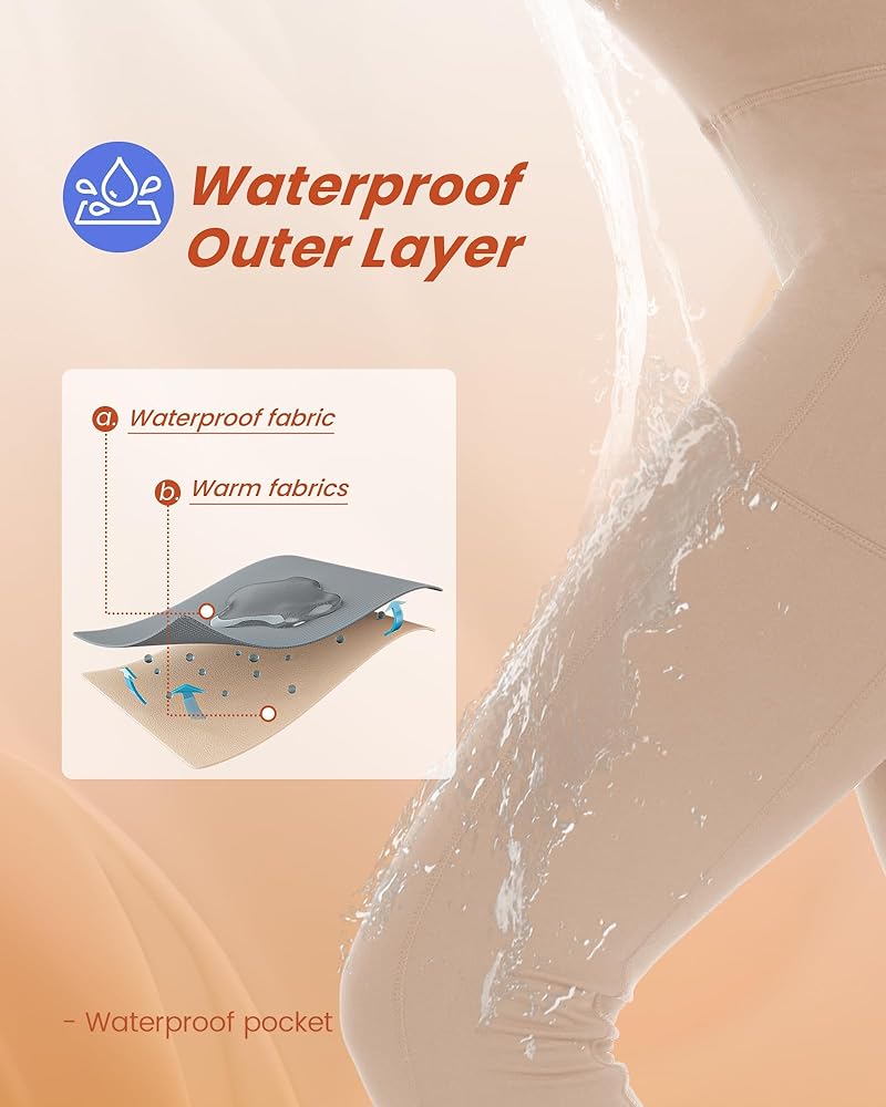 الصوف الدافئ والمقاوم للماء: احتضن الشتاء بثقة في السراويل الضيقة المبطنة بالصوف! يوفر الجزء الداخلي من الصوف الناعم طبقة من العزل الحراري الذي يحبس الحرارة. كما أنها مقاومة للماء، مما يوفر الحماية ضد المطر والثلج