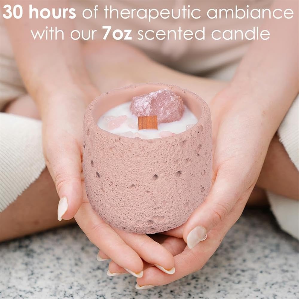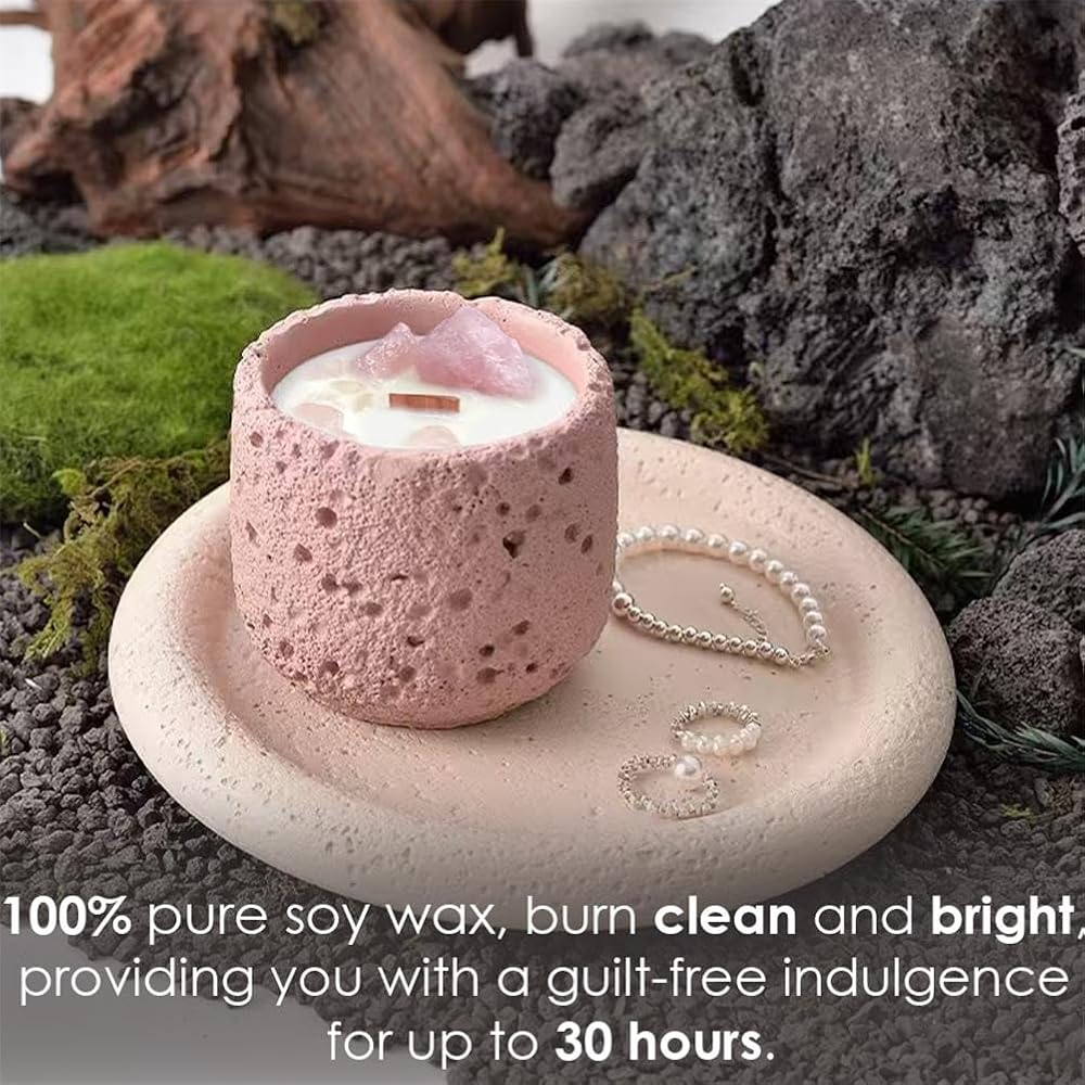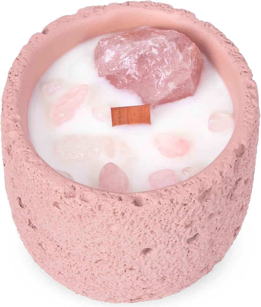 - تأتي شمعتنا الكريستالية الوردية الجميلة المصبوبة يدويًا في حاوية خرسانية وردية فريدة من نوعها، ومزينة بشكل أنيق بحجر الشفاء من الكريستال الوردي، مما يجعلها قطعة ديكور مثالية لغرفة المعيشة أو غرفة النوم الخاصة بك.