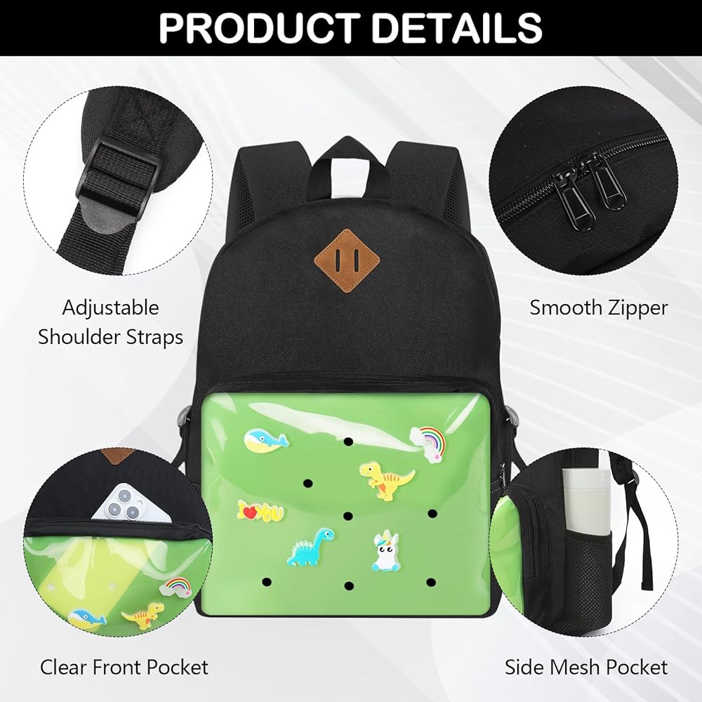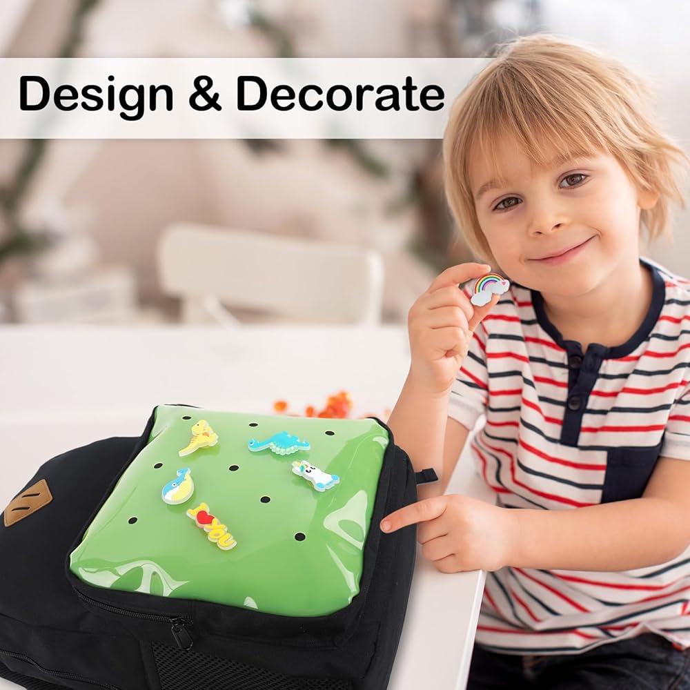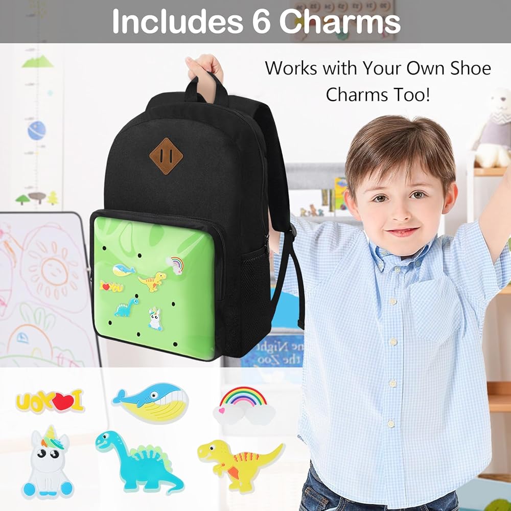 ممتعة للأطفال: تتميز هذه الحقيبة بفتحات ساحرة للأحذية حتى يتمكن الأطفال من تزيين حقيبتهم المدرسية. الجيب الأمامي الساحر يعمل بشكل رائع للكتب والملاحظات، ويناسب أي حلية