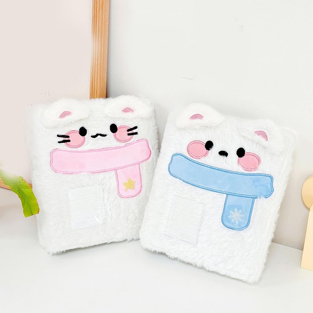 Korean Photocard Binder Covers Cartoon Dog Cats Plush Refillable Pages 6Ring Cartoon Binder Photo Album Shell Organizers