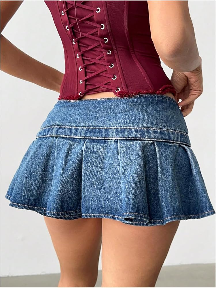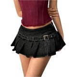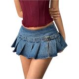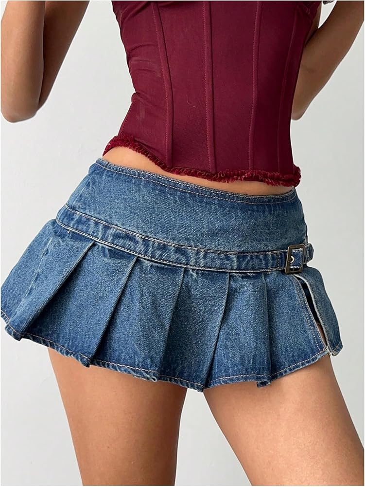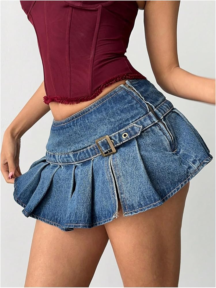 • Features: Y2k mini denim skirt for women, low waisted, buckle belt, pleated hem, skater aline skirt