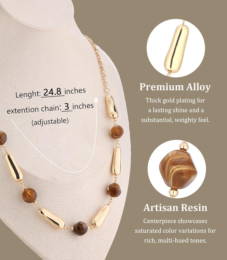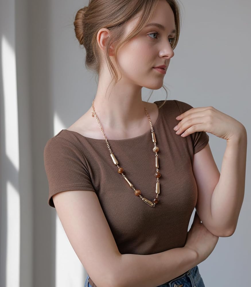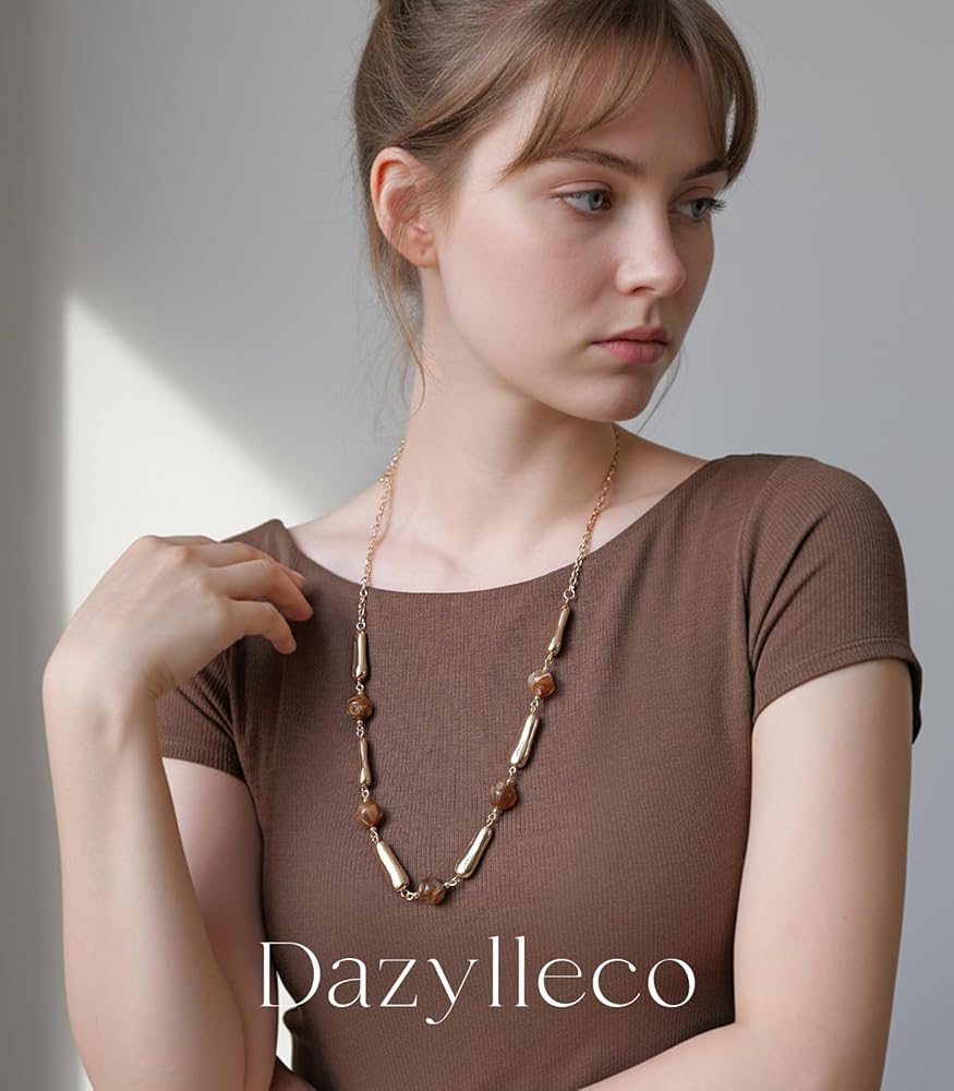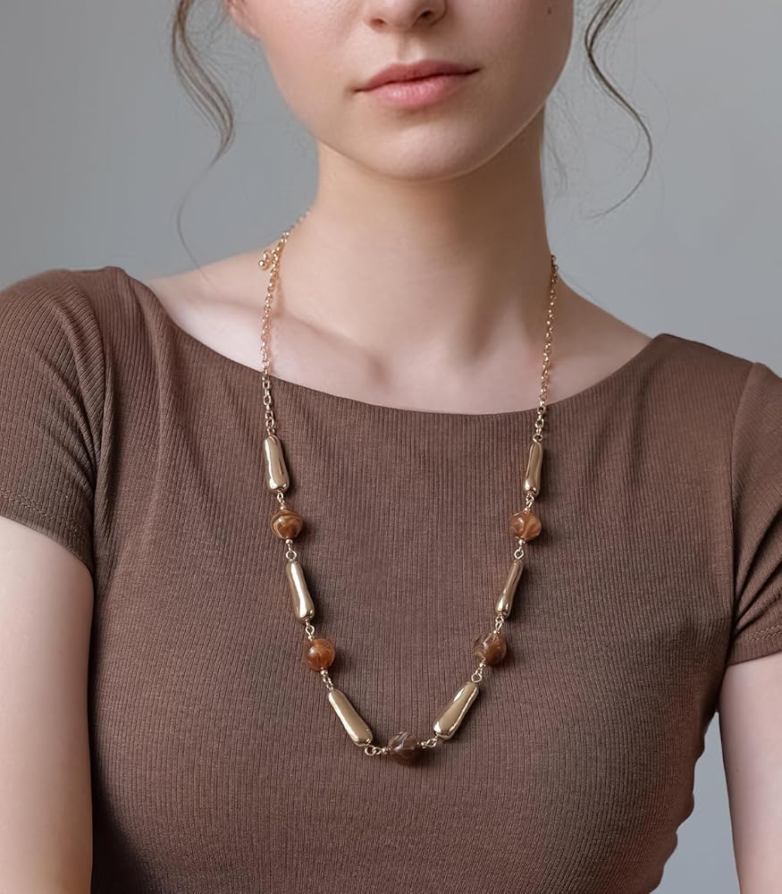 كلاسيكي ومتعدد الاستخدامات: الطول 24.8 بوصة يتوضع بشكل أنيق على الصدر ويتناسب بسهولة مع رقبة على شكل حرف V، ورقبة مستديرة، وخط رقبة مربع، وخطوط عنق أخرى. يسمح لها الذهب الخالد بالانتقال بسلاسة من الأناقة النهارية إلى الأناقة المسائية، مما يجعل قلادة السلسلة المزينة بالخرز ضرورية في مجموعة المجوهرات.