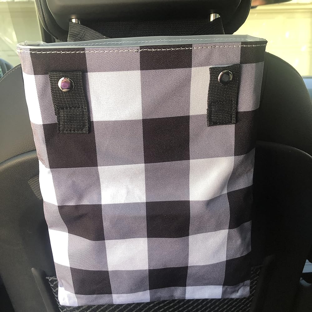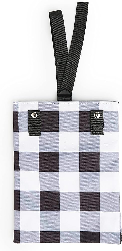 This trash bin perfect for keeping your car cute and clean! It is has a sturdy cotton canvas on the outside and the inside has water-resistant liner. Easily and securely attach a plastic bag using the snaps (2 on each side) or just wipe down the bag as needed. The bags that are used to clean up dog waste on dog walks fit perfect. Bag measures 11.5 inches x 8.5 inches and includes a 22 inch adjustable strap so that it can easily be attached to your headrest, console, gear shift or door handle.