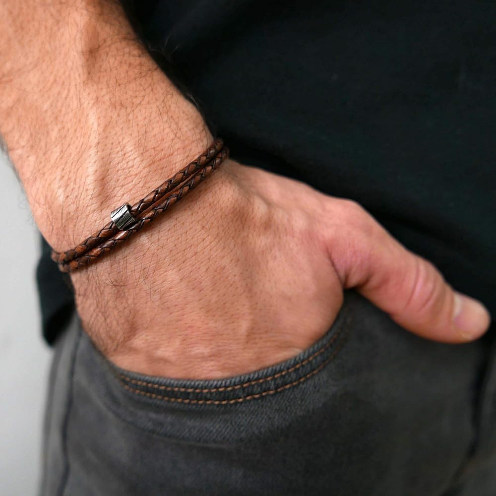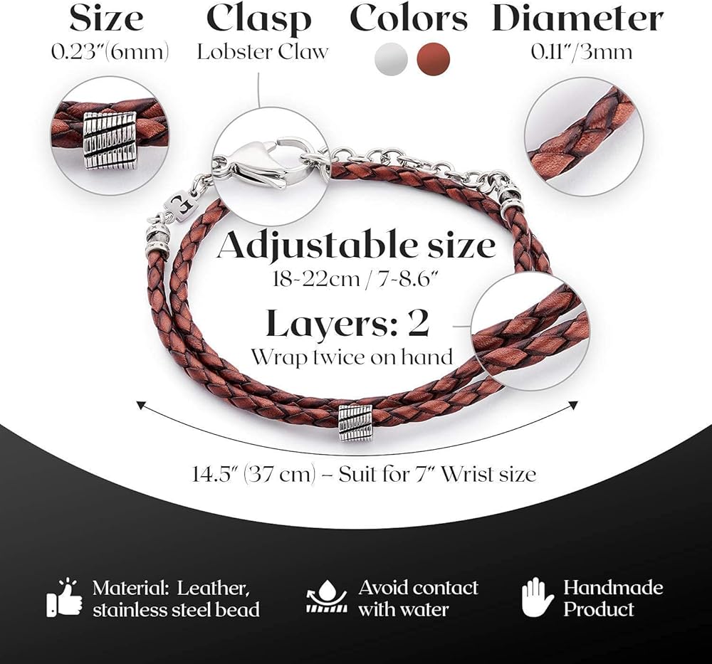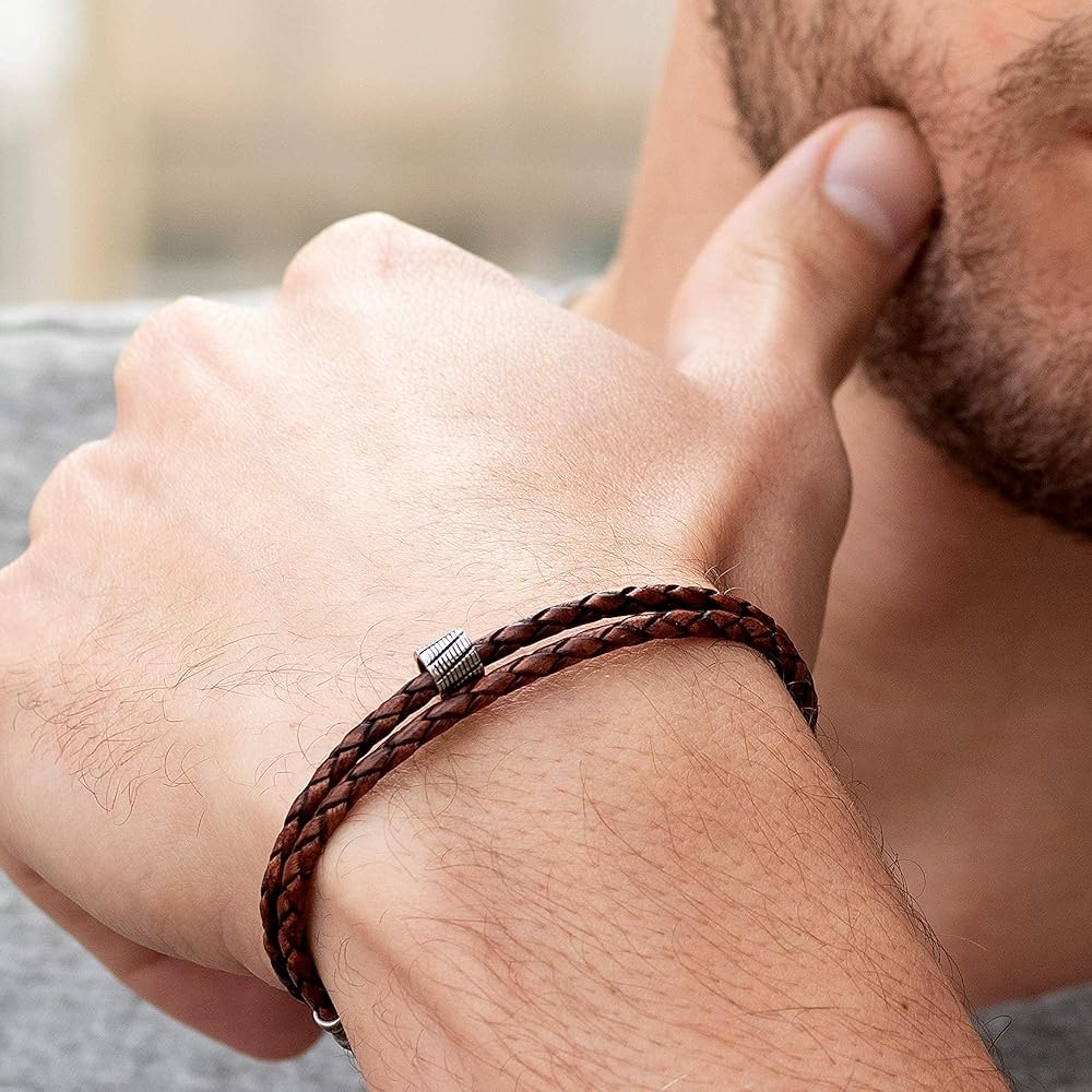• سوار جلدي مصنوع يدويًا من Galis للرجال، اصنع أفضل هدية لعيد الميلاد أو العطلة أو عيد الحب 2021 لوالدك أو أخيك أو ابنك أو زوجك أو صديقك.