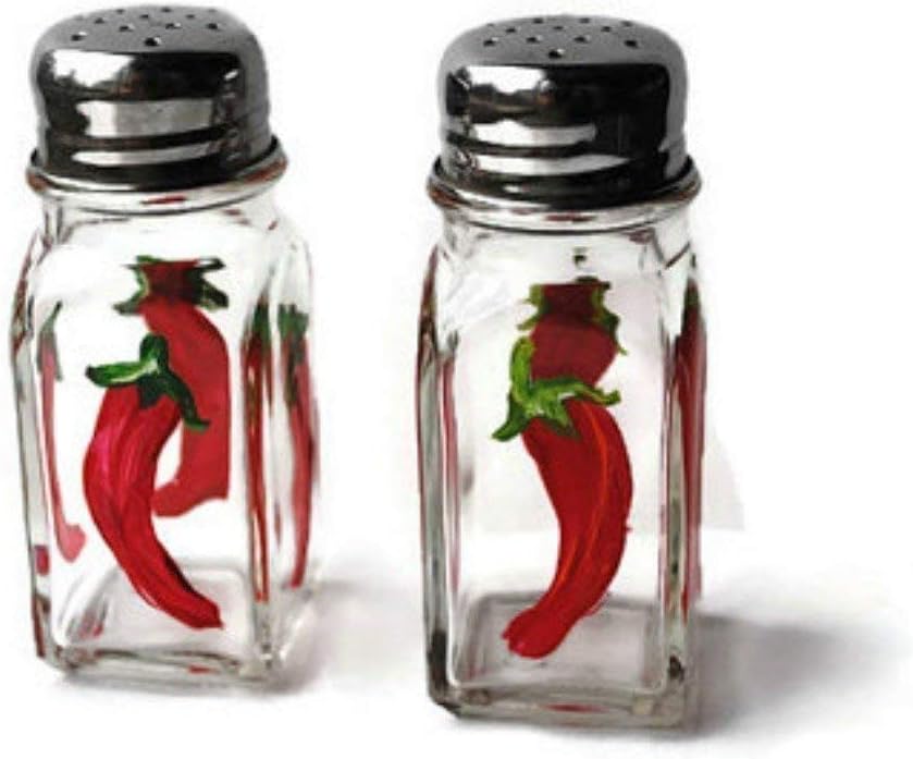 قم بإضفاء البهجة على طاولة مطبخك مع مجموعة ملح الفلفل الحار والفلفل الحار. تم طلاء هزازات الملح والفلفل على الجوانب الأربعة. يوصى بالغسيل اليدوي