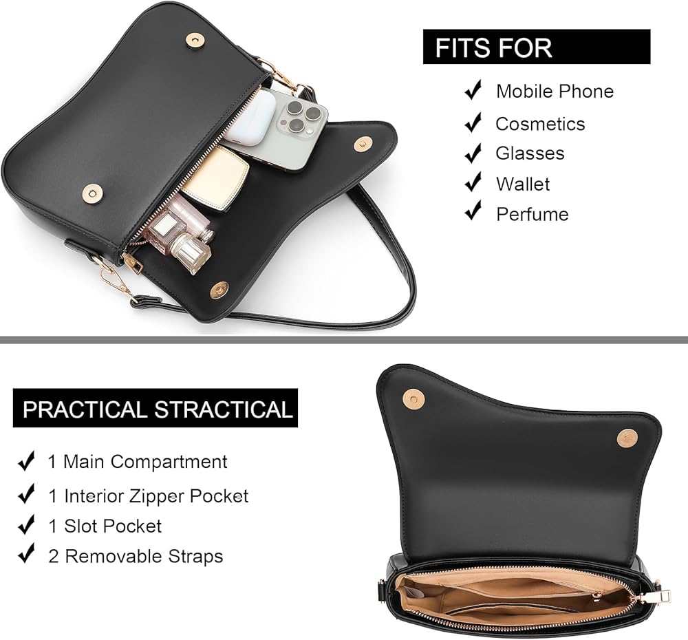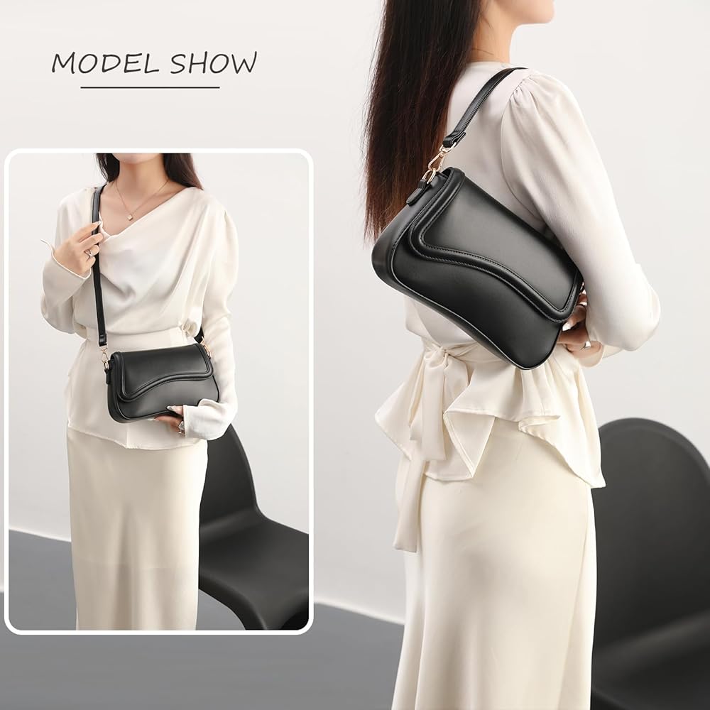 شريطان كتف قابلان للإزالة - مجهزة بحزام كتف قصير قابل للإزالة وحزام طويل قابل للتعديل، يمكن تصميم هذه الحقيبة على شكل هلال كحقيبة كتف، أو حقيبة يد كلاسيكية، أو محفظة تحت الإبط، أو حقيبة يد، أو حقيبة هوبو، أو حقيبة كروس - مثالية للسفر أو العمل أو المواعيد أو الحفلات أو التسوق.