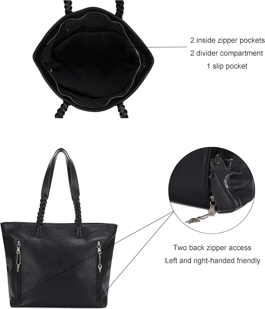 متوافقة مع الحمل المخفي: تم تصميم حقيبة الكتف هذه بجيب مخفي مزدوج المدخل قابل للقفل (8 بوصة عرض × 11 بوصة ارتفاع) وتأتي مع حافظة قابلة للإزالة. يمكن الوصول إليه باليد اليسرى واليمنى لتخزين آمن وسري.