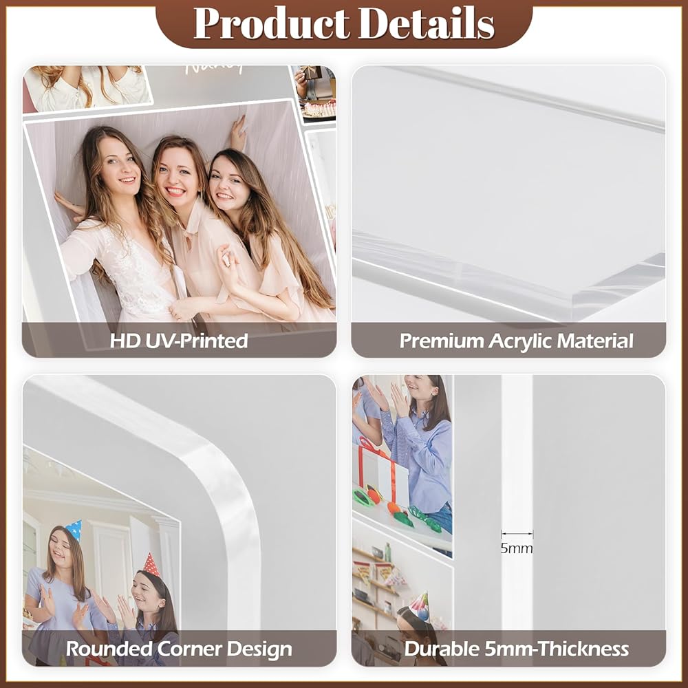 مواد عالية الجودة وتكنولوجيا الطباعة بالأشعة فوق البنفسجية: جميع إطارات الصور لدينا مصنوعة من مادة أكريليك عالية الجودة بسمك 5 مم، على عكس الزجاج التقليدي، الأكريليك لا ينكسر أو يخدش بسهولة، كما أنه مقاوم للبهتان والأصفرار. بالإضافة إلى ذلك، نستخدم تقنية الطباعة فوق البنفسجية المتقدمة لضمان طباعة جميع الصور بجودة عالية الدقة، وتبقى سليمة ومشرقة وحيوية لفترة طويلة.