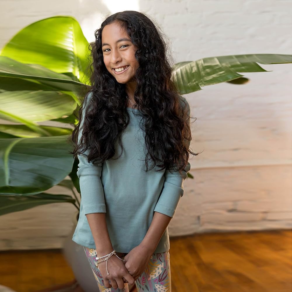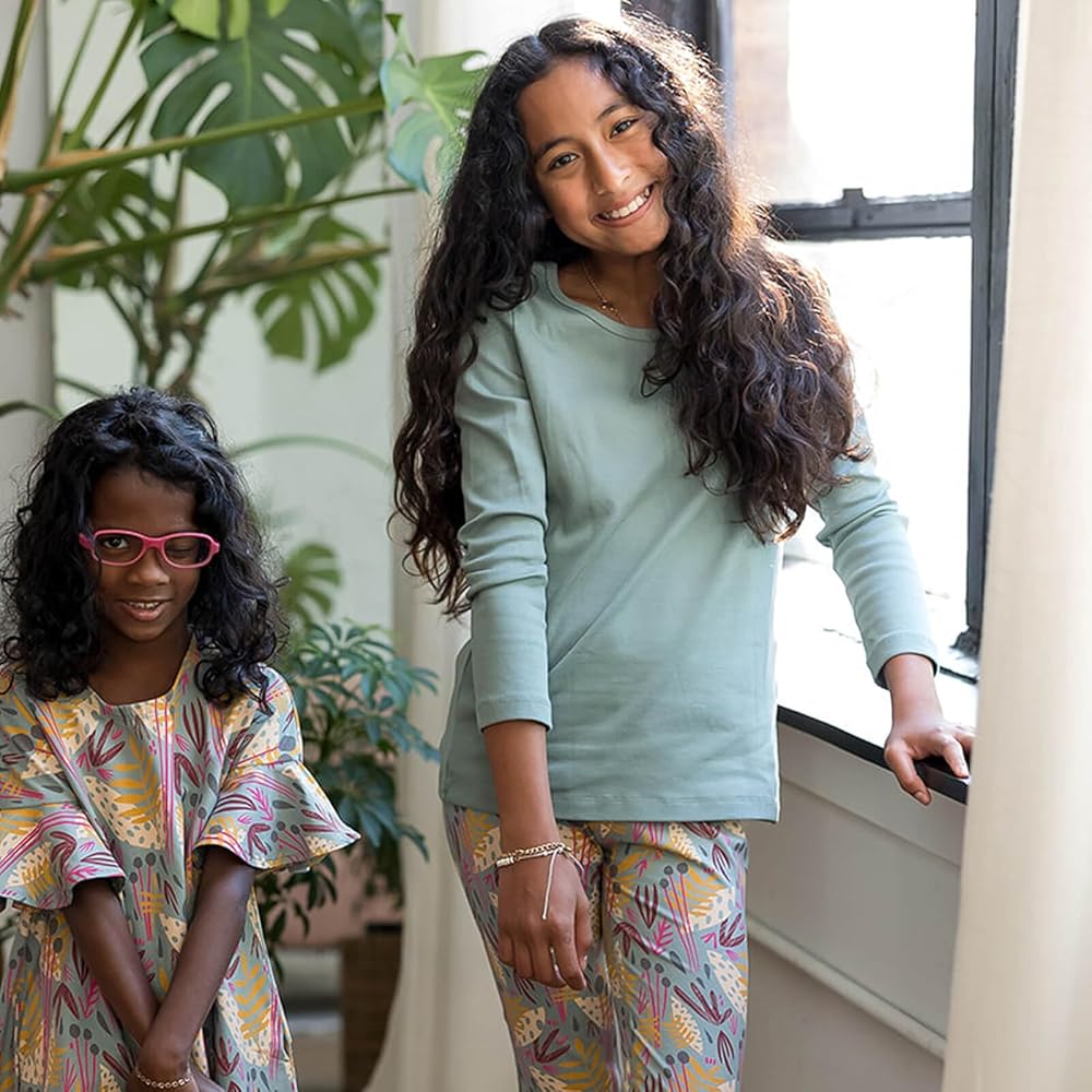 Mightly long-sleeved t-shirts are designed with a charming scoop neck shape and made from soft rib knit for extra stretch and comfort. Our girls tees are available in bright colors for a color pop and neutrals for easy-to-wear school outfits. Mightly children's clothes are certified to the Global Organic Textile Standard (GOTS) and made with non-toxic dyes and inks. Our dye process results in long-lasting color that won't irritate sensitive skin. Mightly's GOTS ID# is OT-034929. Mightly clothing is made in Fair Trade Certified factories. These factories must adhere to rigorous social, environmental and economic standards to protect the health and safety of workers. This means safe working conditions, no child or forced labor, elimination of harmful chemicals, guaranteed maternity leave, and much more. Mightly's Fair Trade ID# is 1716500.
