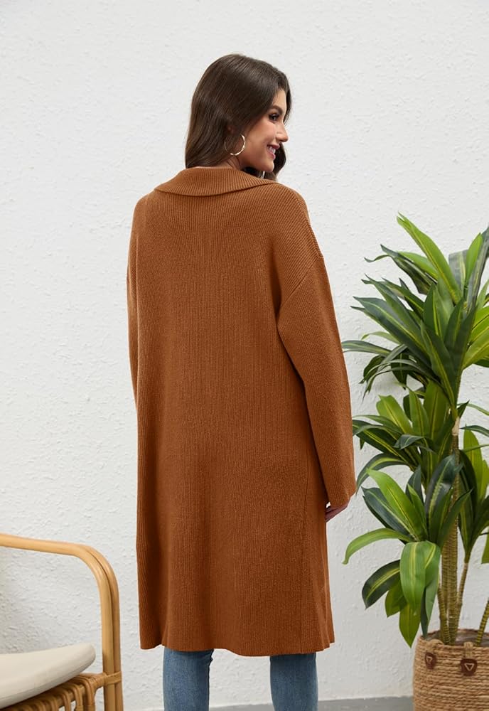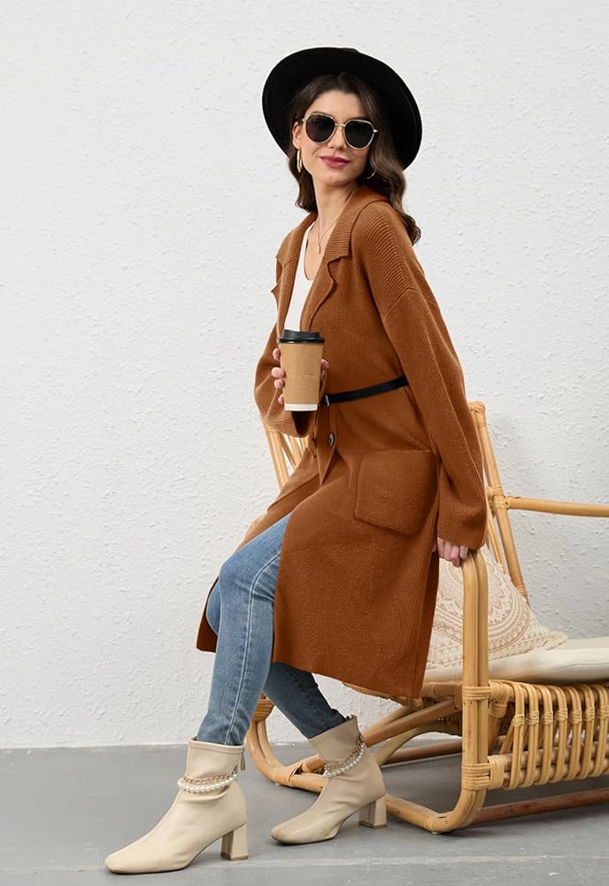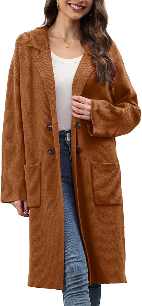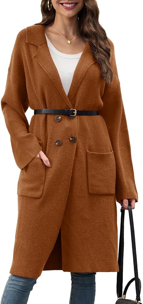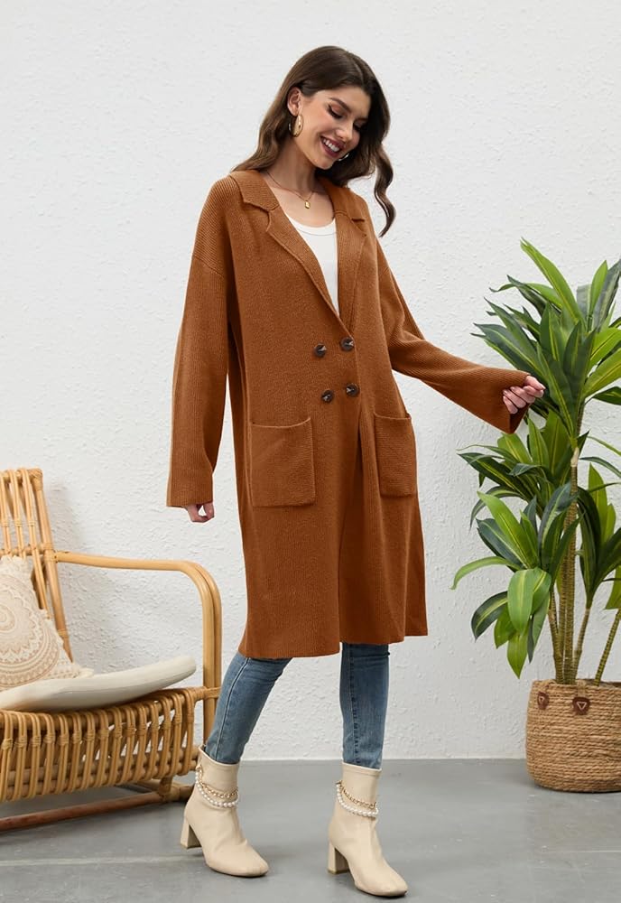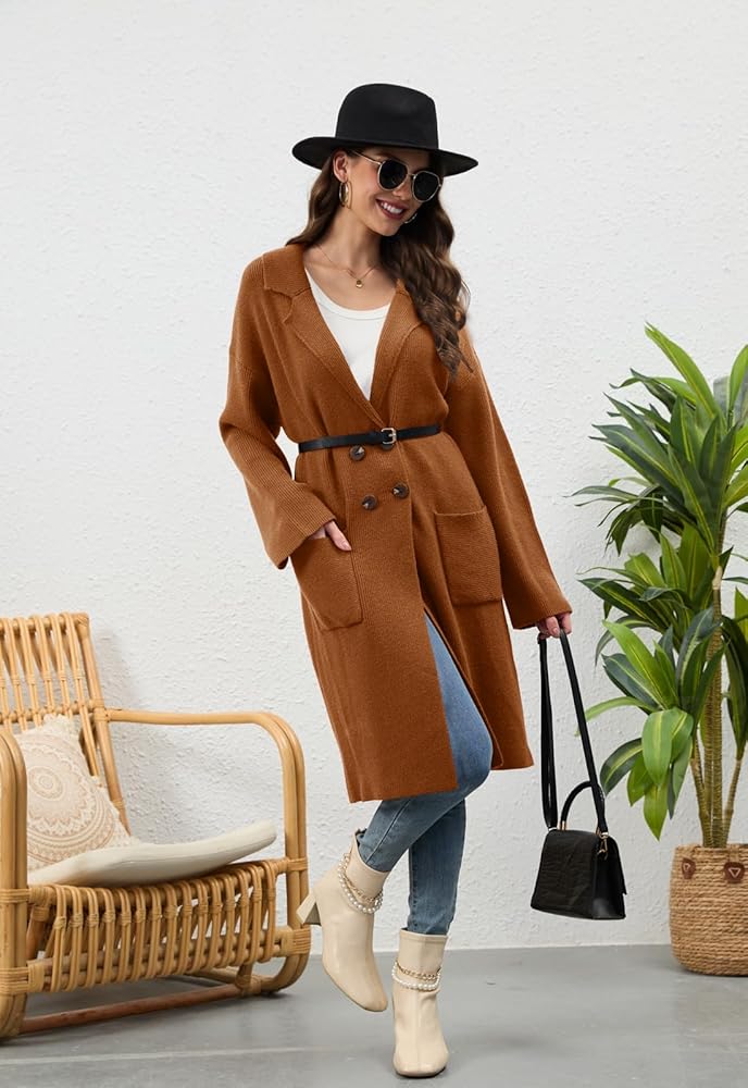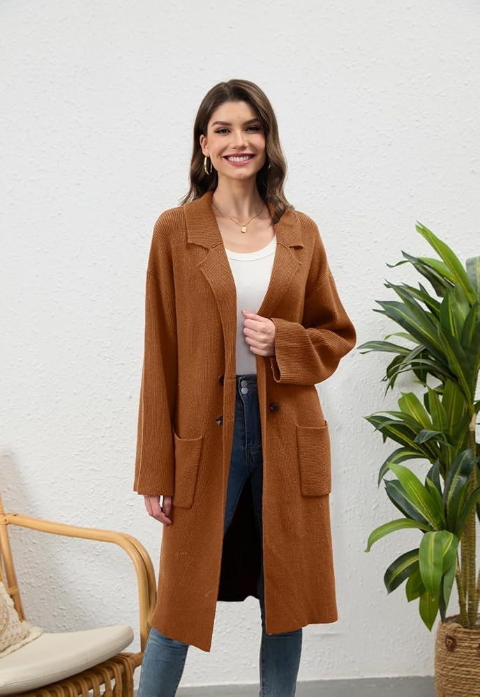【المميزات】: سترات صوفية طويلة للسيدات / سترات خريفية ذات طية صدر السترة للنساء 2025/ سترات فضفاضة كبيرة الحجم للنساء / سترة صوفية مفتوحة من الأمام مزدوجة الصدر للنساء / سترات صوفية كاجوال طويلة للعمل للنساء / سترات صوفية كاجوال ملابس رسمية. تحتوي هذه السترة الطويلة المحبوكة على جيبين رقعتين وطية صدر مشقوقة و4 أزرار والنسيج المحبوك مرن للغاية.