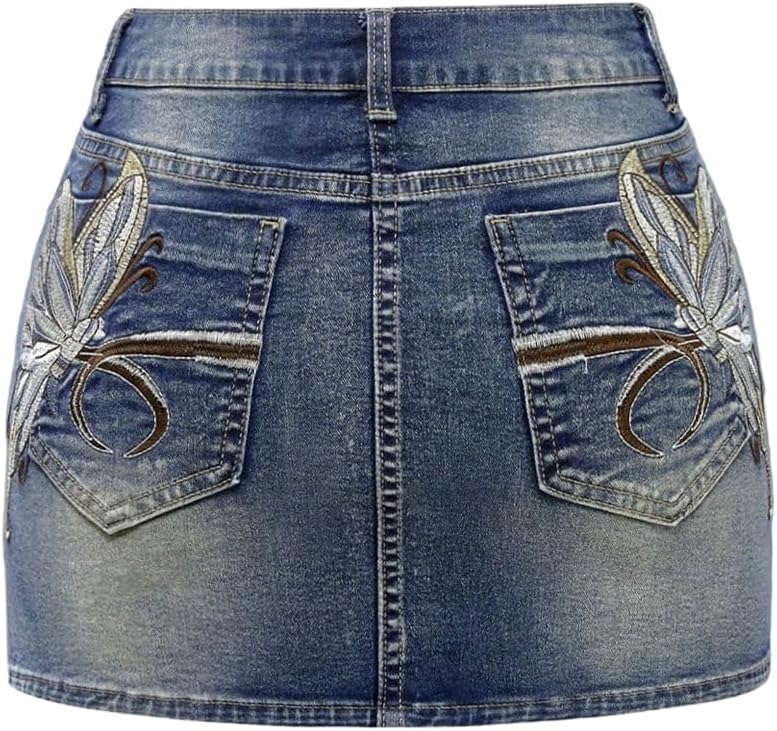 • Features: Low waist, stretch, embroidered, chic denim skirt for women