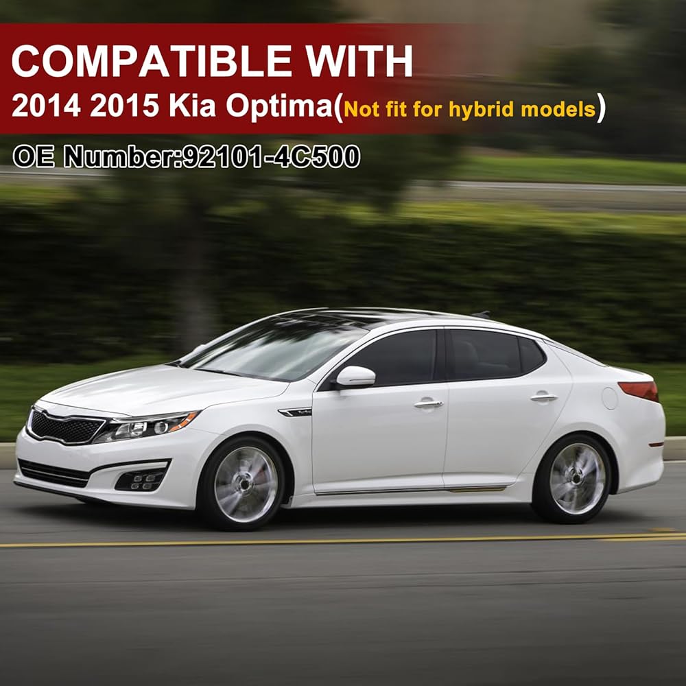 • توافق السيارة: تتوافق مجموعة المصابيح الأمامية مع المصابيح الأمامية لكيا أوبتيما 2014 2015. لا يصلح للنماذج الهجينة. وشملت المصابيح الكهربائية ومحول الموصل. تأكد دائمًا من مطابقة المصابيح الأمامية لطراز سيارتك قبل الشراء