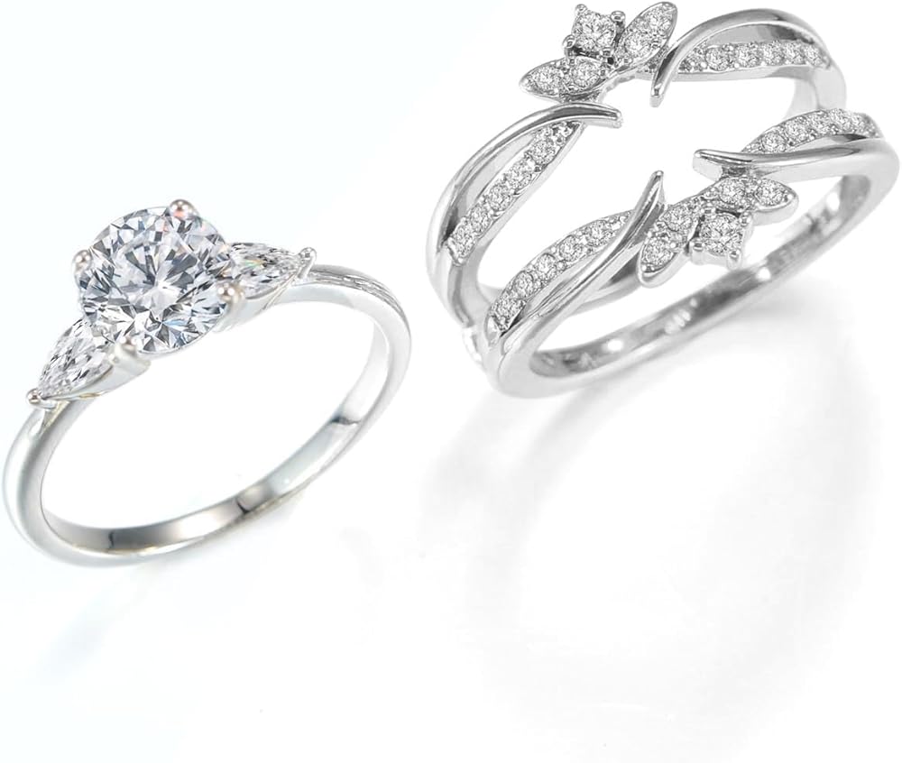 • Complete Your Look with 2PCS Ring Sets The included band stacks beautifully with the three-stone ring, creating a cohesive bridal set. Each piece is nickel-free and rhodium-plated for durability and comfort.