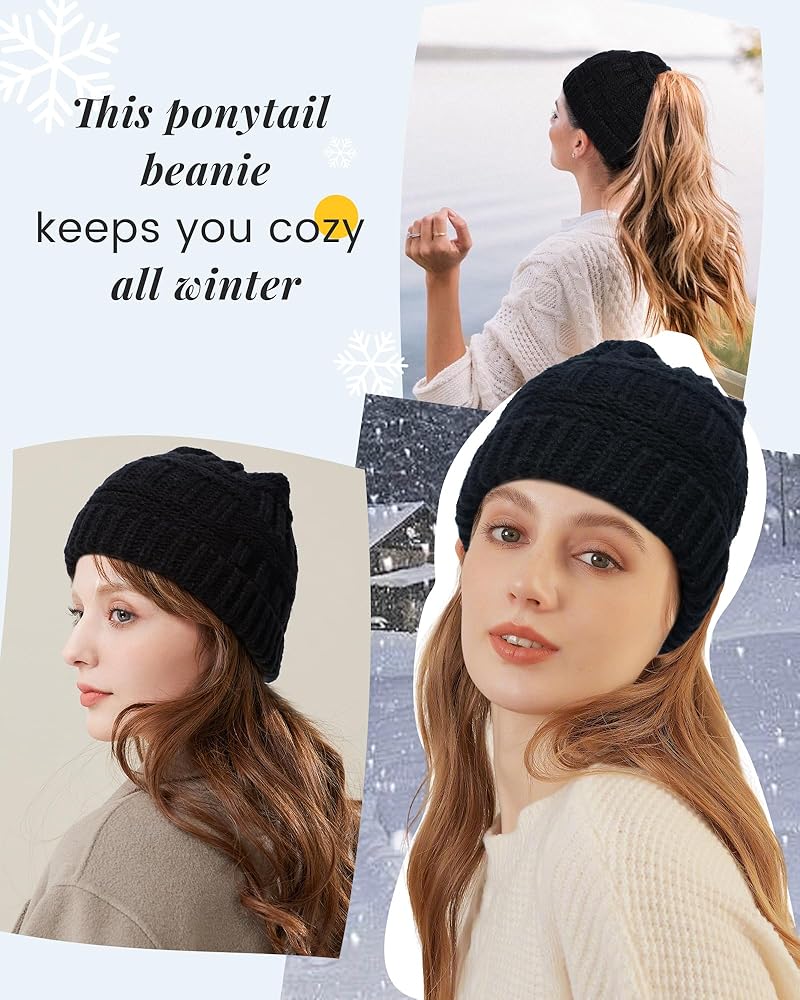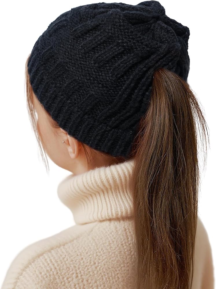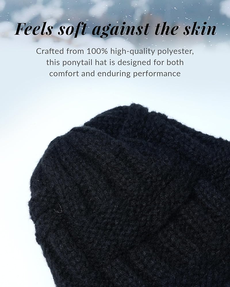 حرية ذيل الحصان: تتميز هذه القبعة الشتوية المترهلة بتصميم فريد من نوعه بثلاث فتحات خلفية لذيل الحصان المرتفع والمتوسط والمنخفض. إنه يوفر المقاس المثالي لتصفيفة شعرك اليوم، مما يمنحك التنوع في أي مظهر، بدءًا من المهر الرياضي العالي إلى المظهر الكاجوال المنخفض