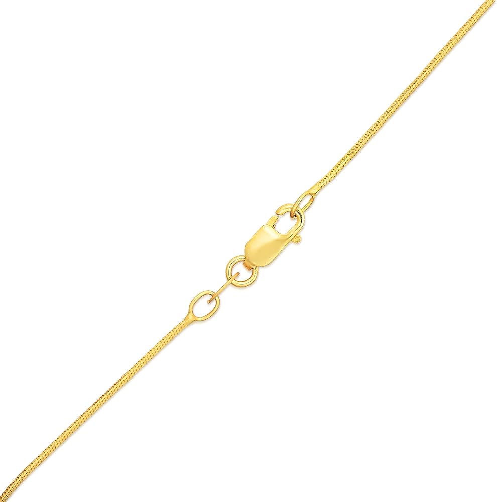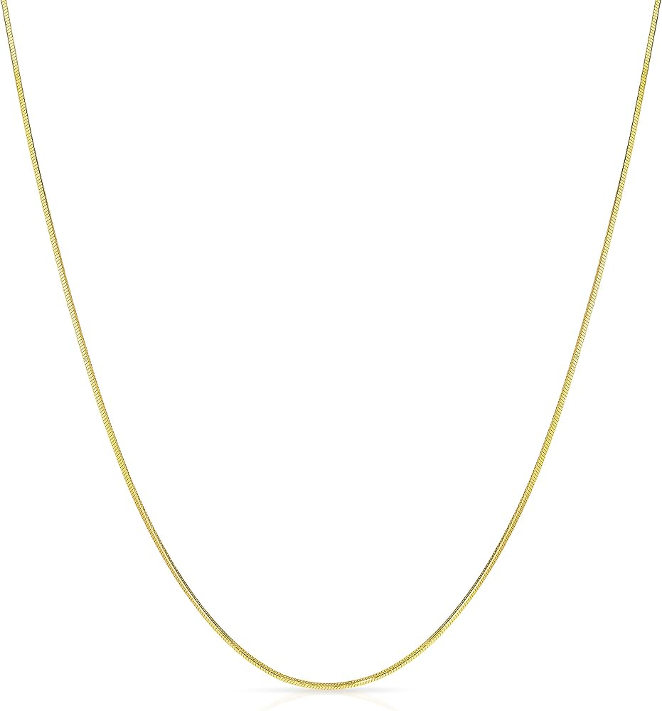 FEATURES— This 0.90mm round snake chain features a brilliant light reflection and a sleek, smooth silhouette. Flexible and fluid, it drapes comfortably along the neckline and works beautifully with small pendants or worn solo.