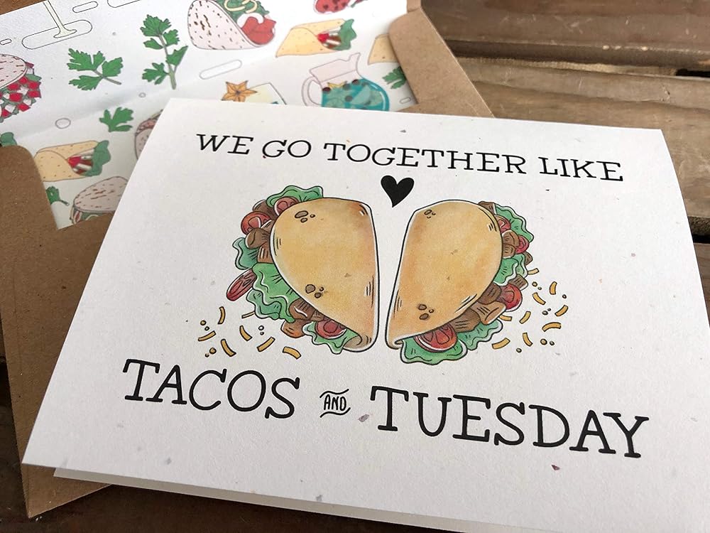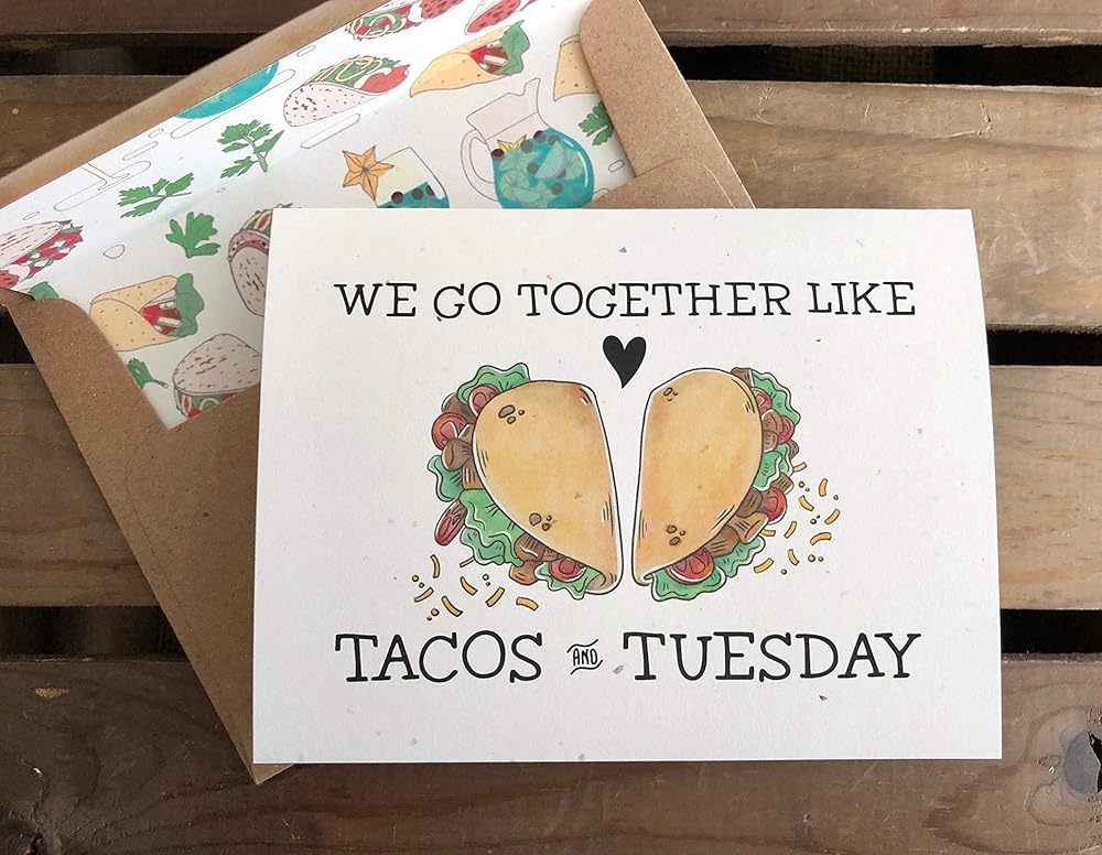 نحن نذهب معًا مثل التاكو والثلاثاء - تاكو لاف - بطاقة ملاحظات - ظرف بني كرافت مبطن - معاد تدويره - صديق للبيئة
