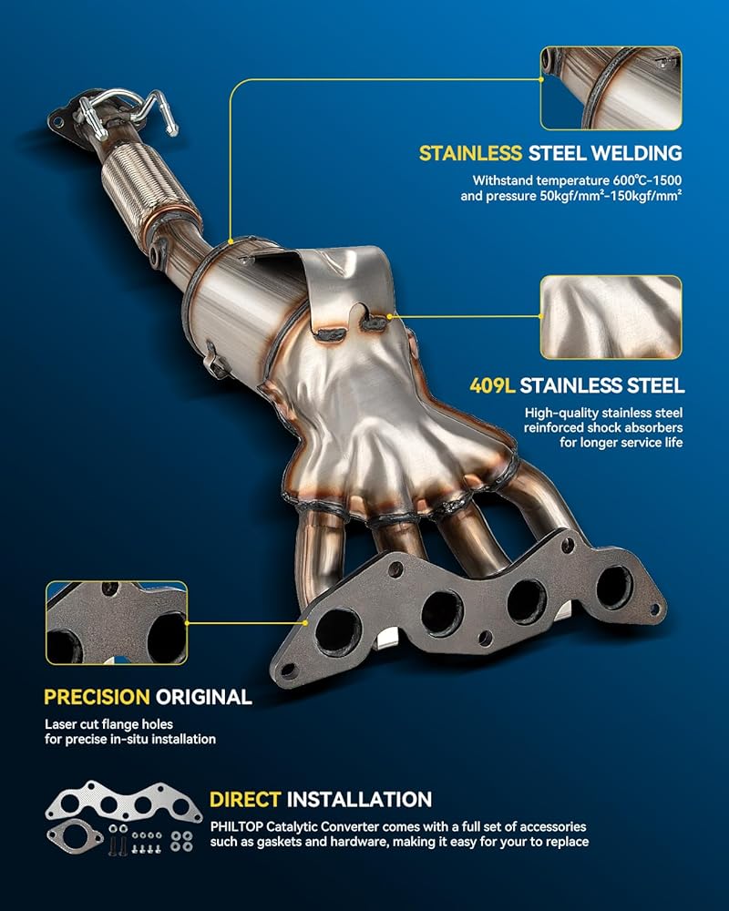 مجموعة المحول الحفاز الأمامي من PHILTOP متوافقة مباشرة مع Ford Focus 2.0L 2012 2013 2014 2015 2016 2017 استبدال # 16647، 641514، 674137، 30580، الفولاذ المقاوم للصدأ (متوافق مع وكالة حماية البيئة)