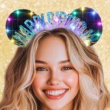 We are focused on multiple styles of hair accessories,like Happy Birthday Hair Accessories,LED Birthday Decorations,Light Up Mouse Ears Headbands and Glitter Happy Birthday Crown Hairbands. Glowing birthday accessories adapt to various hairstyles,including Straight hair, Curly hair,Ponytail,Buns,Smooth hair,and Thick hair. Light up headbands for women girls with 3 modes led light,formal light,flashing and quick flashing,will keep working at least 48 hours for flashing. Touch led gold birthday hairbands to take away insulating sheet,press the small round button to choose the light modes you like. Shining and lluminate yourself in a dark or poorly lit place by wearing these FLASHING BIRTHDAY HEAD BANDS. Glow in the dark headpiece with shining happy birthday and cute mouse ears,will be the focus in the crowd. Luminous Birthday Hair Hoop are nice gift for daughter,mother,girlfriends and lovers. Due to manual measurement, the size may be slightly different.The actual color of light flashing mouse ears may vary slightly from the online image due to different Camera lens.