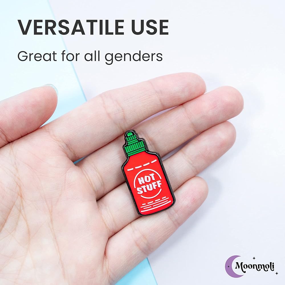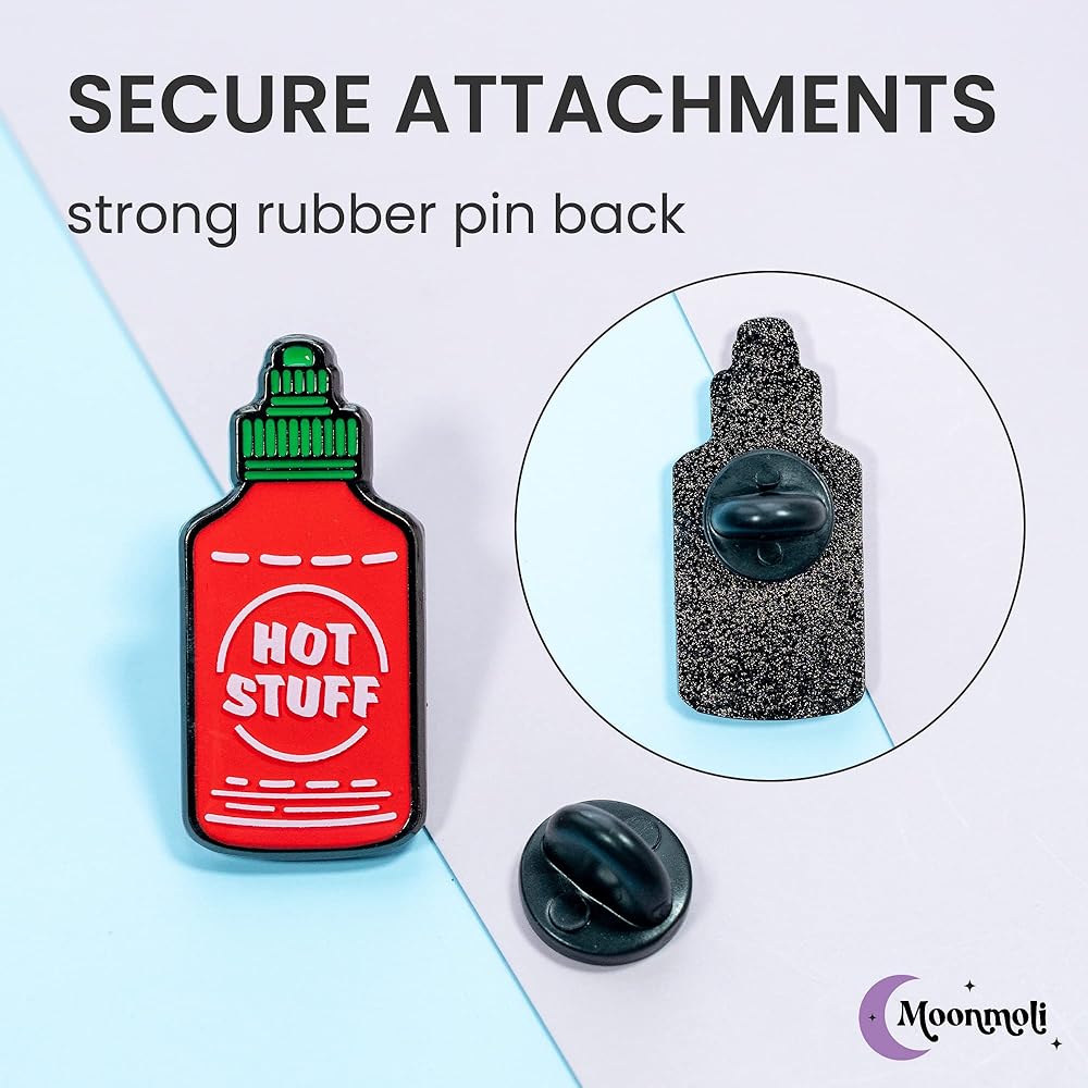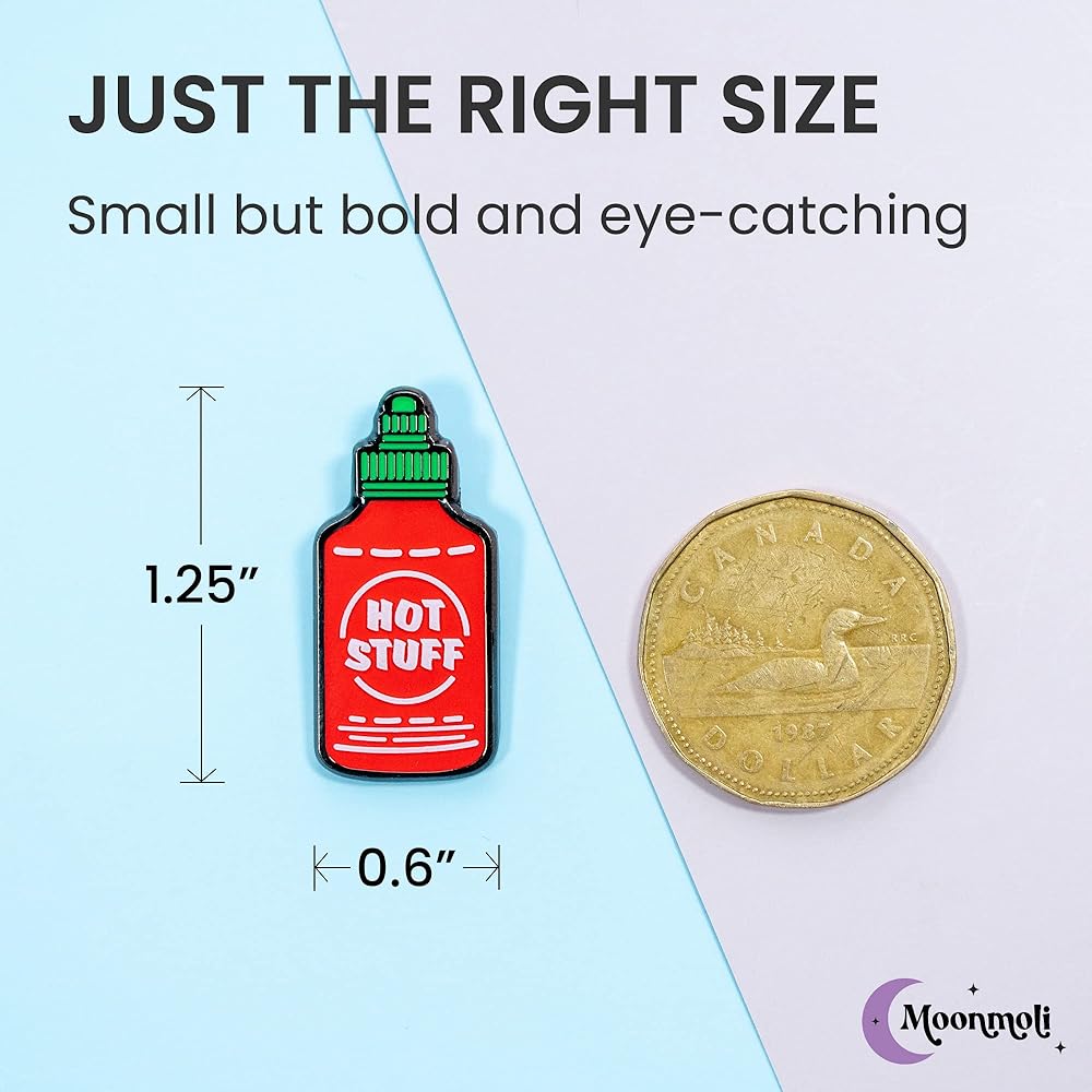 دبابيس المينا اللطيفة من Moonmoli Hot Stuff لحقائب الظهر أو القبعات أو طيات الصدر أو الحقائب أو السترات مع دعامة مطاطية واحدة لمرفق آمن - دبابيس إبداعية ومضحكة جمالية ومتينة وعملية - بطول 1.25 سم - قطعة واحدة