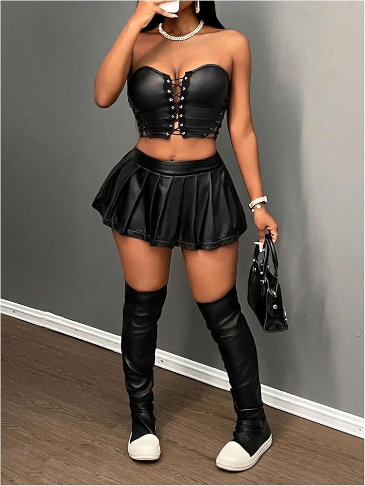 - Features: Plus size, high rise, flare hem, solid color, pu leather, club skirt for women