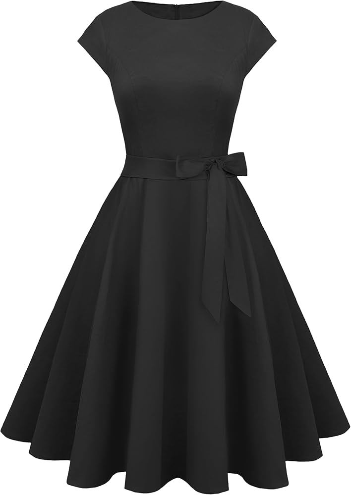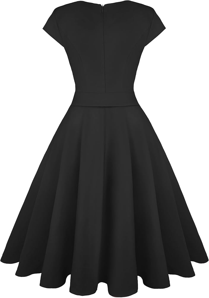 Inspired by the 1950s, this cocktail dress perfectly captures the elegance of vintage fashion. The classic boat neckline frames the graceful shoulders, while the cap sleeves provide just the right amount of coverage. The versatile design pairs well with your favorite heels and accessories, allowing you to create a variety of glamorous looks. This dress embodies the elegance and sophistication of mid-century fashion while meeting the comfort and practicality that today's women demand. Whether you're wearing it as a wedding dress, cocktail dress, evening dress, party dress, festival dress or formal dinner dress, this vintage dress is sure to make you stand out with classic charm.