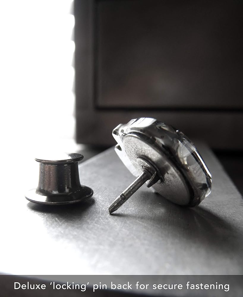 إن الجودة والدقة التي لا مثيل لها لهذا الكريستال الفاخر تجعل هذه الجماجم الكريستالية المذهلة تنبض بالحياة مع الضوء والحركة! عمود دبوس معدني أساسي مطلي ودبوس قفل خلفي للمساعدة في منع فقدان الدبوس المخيف!