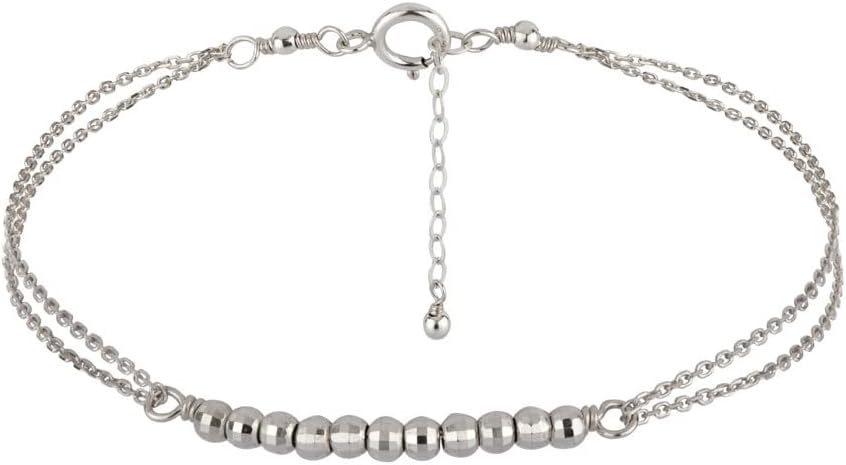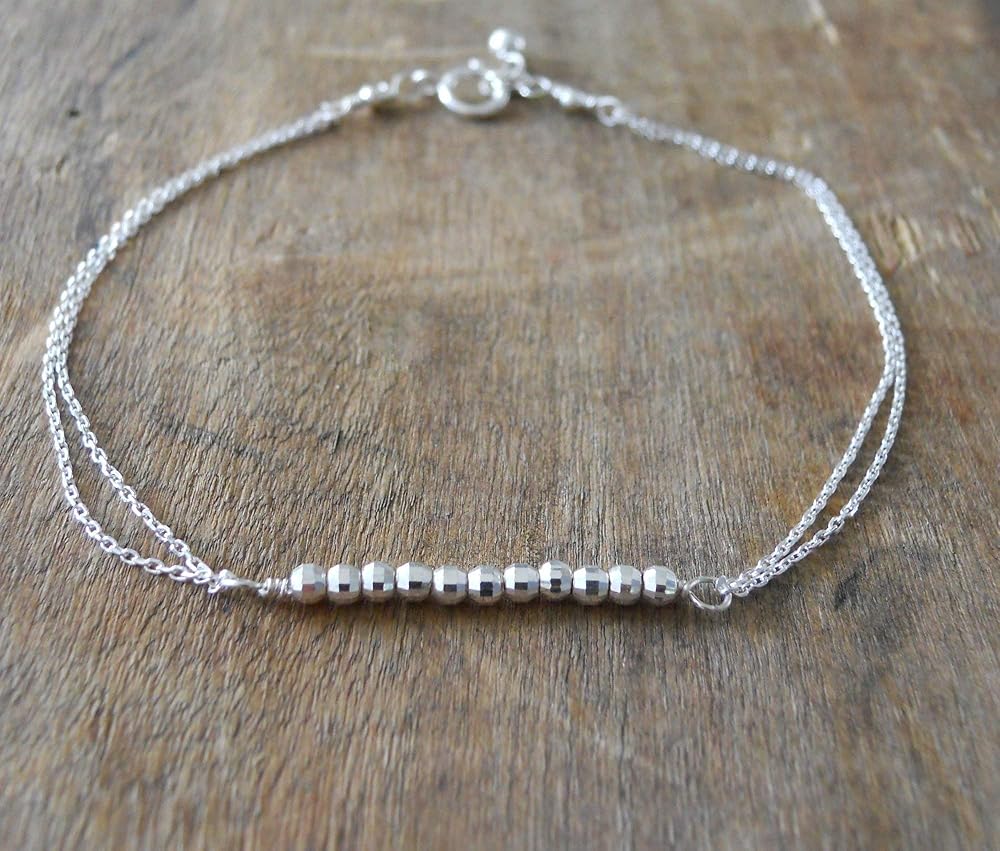 • Handmade Dainty Sterling Silver Beaded Bar Bracelet For Women