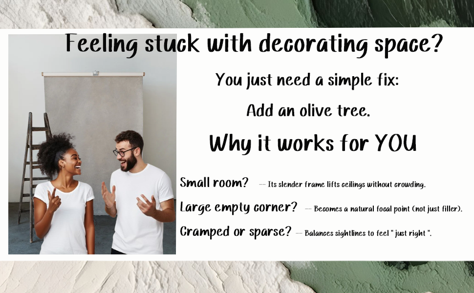 كيف تختار شجرة الزيتون الخاصة بك؟ 💓 تعتبر أشجار الزيتون الصناعية بطول 5 أقدام و6 أقدام مثالية لتحسين وملء المساحات الصغيرة إلى المتوسطة، مما يحقق التوازن الفعال بين الشعور البصري للمنطقة. يمكن أن تصبح أشجار الزيتون التي يبلغ طولها 7 أقدام و7.5 أقدام هي النقطة المحورية في الديكور لمساحتك الخاصة.