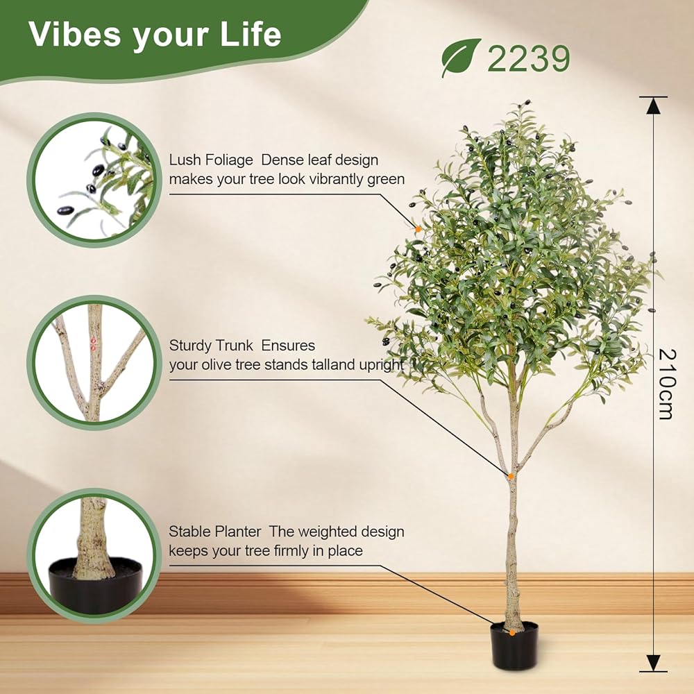 شجرة الزيتون المورقة🫒 تتميز شجرة الزيتون المريحة هذه بـ 2239 ورقة خضراء نابضة بالحياة وحوالي 102 ثمرة زيتون ممتلئة، مقترنة بتصميم جذع مصنوع بدقة. انغمس في تجربة الديكور التي توفرها هذه المساحات الخضراء النابضة بالحياة.