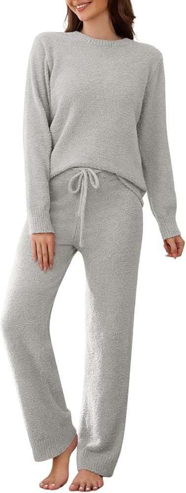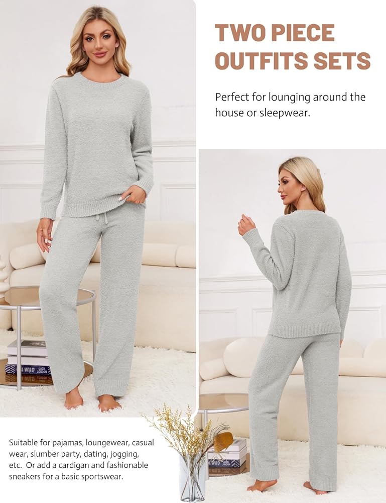 【طقم بيجامة نسائي من الصوف】طقم البيجامة النسائي هذا مصنوع من نسيج الصوف المجعد، 100% بوليستر، ناعم جدًا ودفء. تتميز أطقم الصالة النسائية المحبوكة لدينا بالنعومة الكافية لتمنحك شعورًا بالراحة والدفء والتهوية. مثالي لأوقات الطقس البارد في الخريف والشتاء.