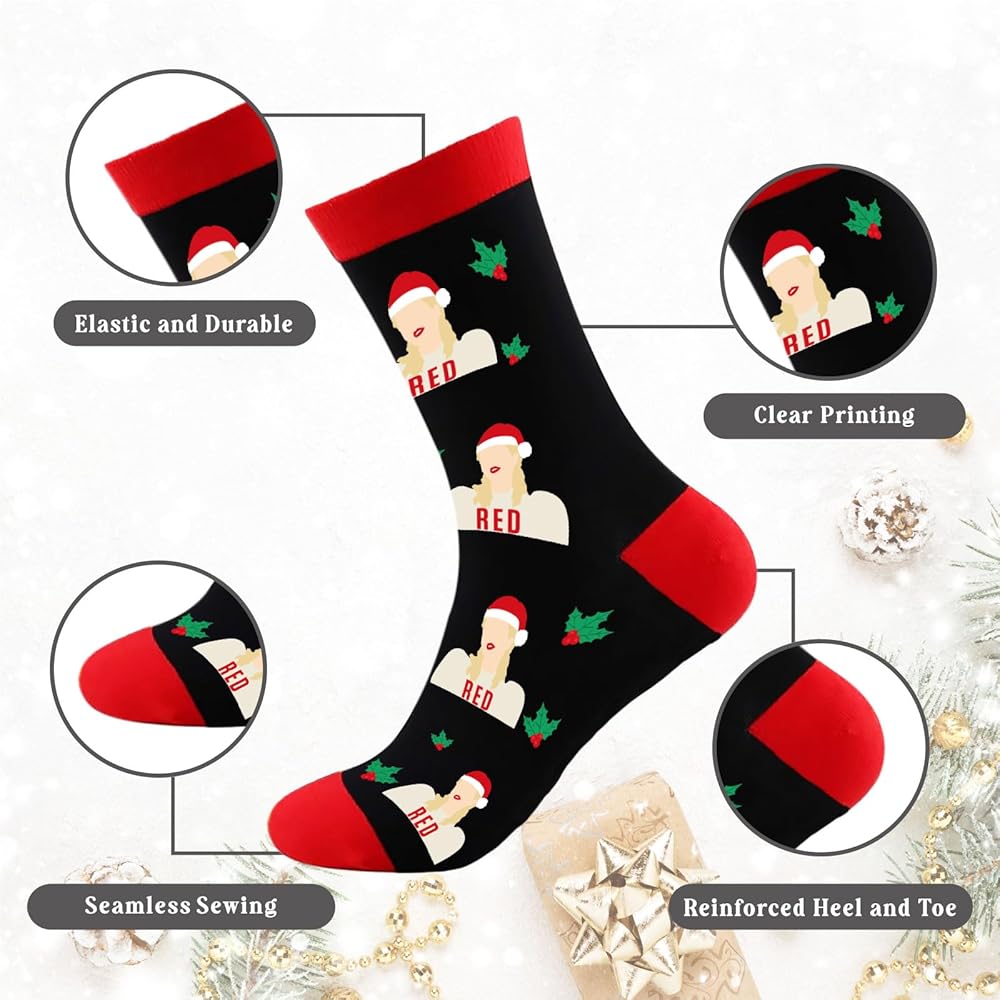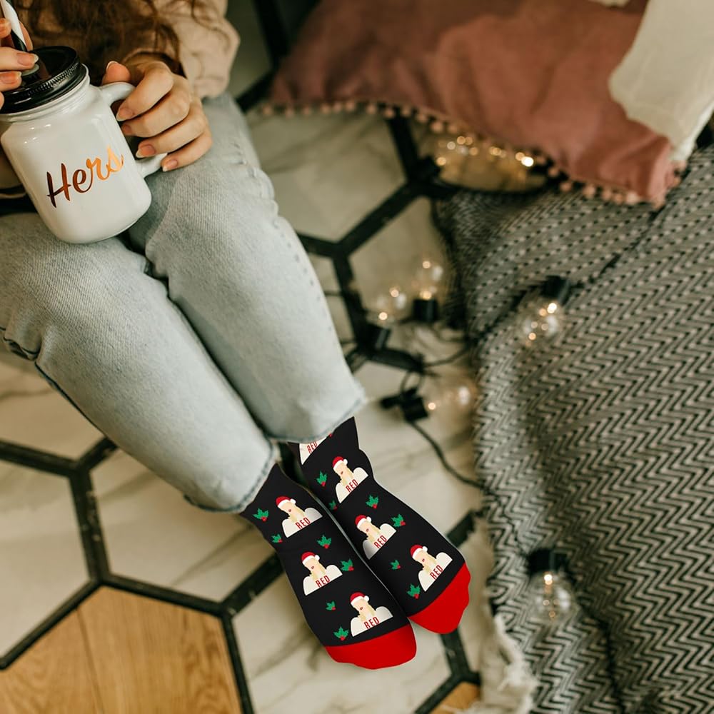 دافئة ومريحة: مصنوعة من مواد محبوكة عالية الجودة، هذه الجوارب لا تبدو مسلية فحسب، بل تحافظ أيضًا على دفء قدميك ودفئهما خلال أشهر الشتاء الباردة. إنها مثالية للاسترخاء بجوار المدفأة أو ارتدائها في تجمعات العطلات.