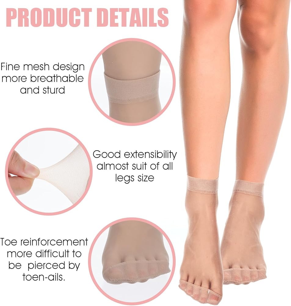 Smooth and Comfortable: These sheer socks are smooth, soft, comfortable to the touch, and elastic without putting pressure on your feet; The thin texture and transparent design keep your feet dry and cool, which is very suitable for summer wear