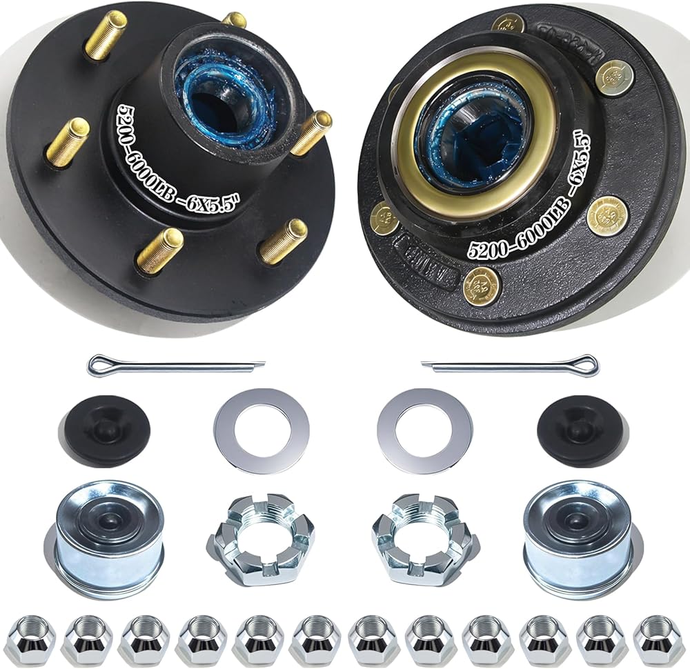 مجموعتان من مجموعات محور المقطورة 5200-6000 رطل 6 براغي 5.5، مجموعة محور المقطورة لـ 1.25 بوصة إلى 1.75 بوصة #42 عمود دوران مدبب، التشحيم المسبق 25580 15123 مجموعة محور مقطورة المهمل.