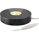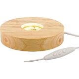 The integrated USB power system ensures flexible placement. Measuring 10x10x2cm (LxWxH), it's compact yet sturdy enough to support most small-to-medium glass pieces. Each unit is hand-finished to preserve wood grain texture, offering both functionality and artistry.