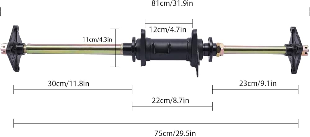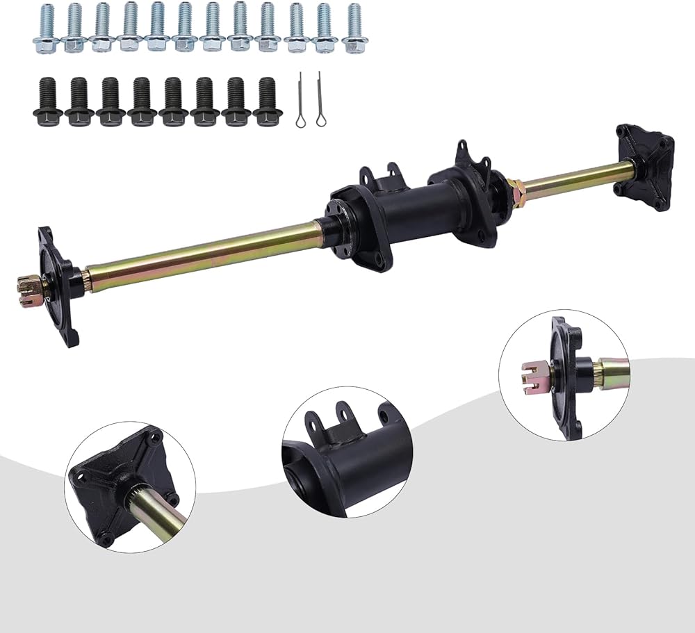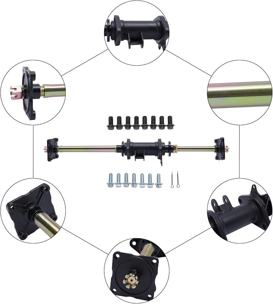 Material: Iron, Rubber. Painting Surface. Black Rear Axle Complete Kit.