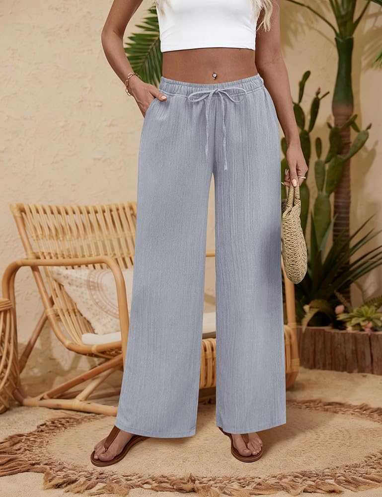 • التصميم: يتميز بخصر عالي المرونة، وطول طويل، ورباط قابل للتعديل، وسروال فضفاض مع جيبين جانبيين. هذه السراويل النسائية غير الشفافة والمريحة لتغطية الشاطئ مريحة وانسيابية وأنيقة، مما يجعلها أنيقة. التصميم البسيط والعادي يجعلك تبدو أنيقًا.