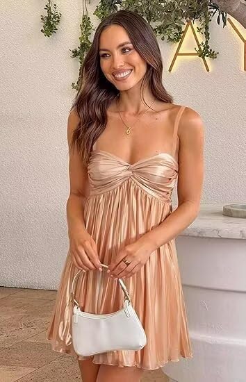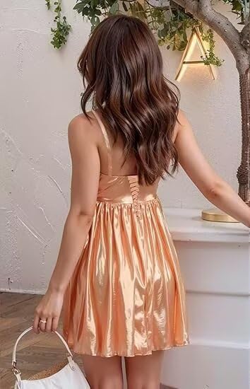المزايا: أشرطة سباجيتي، طول صغير، قصير، مشد، مطوي، منتفخ، على شكل حرف A، أربطة من الخلف، رقبة على شكل قلب، بدون ظهر، مبطن بالكامل، حمالة صدر مدمجة، بدون أكمام، فستان بمقاس كبير، فساتين العودة للوطن من الساتان للمراهقين
