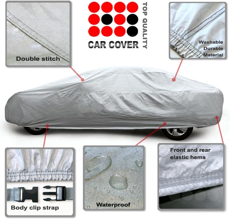 • يوفر حماية فائقة ضد جميع الظروف الجوية. مصبوب خصيصًا لمحيط السيارة: أكثر من 20 مقاسًا مختلفًا + حواف مرنة + حزام مشبك أسفل الجسم لضمان ملاءمة أفضل للمركبة صغيرة الحجم