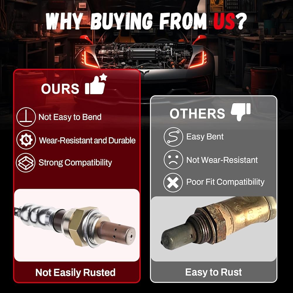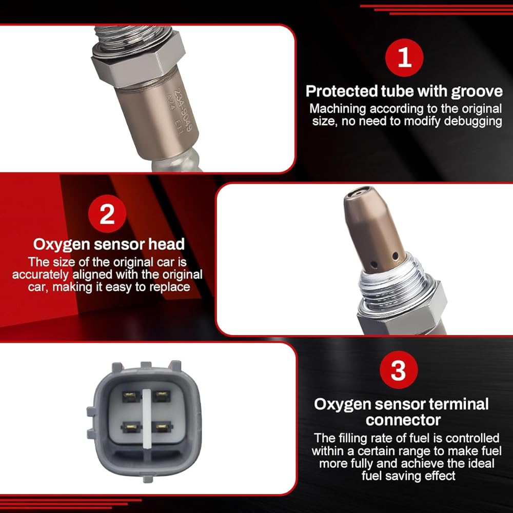 • [وظيفة مستشعر O2 للسيارة] يقوم مستشعر O2 بمراقبة الغاز المختلط، مما يضمن أن المحرك في حالة احتراق مثالية للغاز المختلط؛ يمكن لمستشعر o2 التحكم في انبعاث عادم السيارات وتحسين جودة احتراق وقود محرك السيارة. يحسن أداء كفاءة المحرك والاقتصاد في استهلاك الوقود ويقلل من انبعاثات ثاني أكسيد الكربون والغازات الضارة الأخرى. إذا كانت أجهزة استشعار سيارتك معطلة، فما عليك سوى استبدال أجهزة استشعار الأكسجين الخاصة بنا لاستبدالها