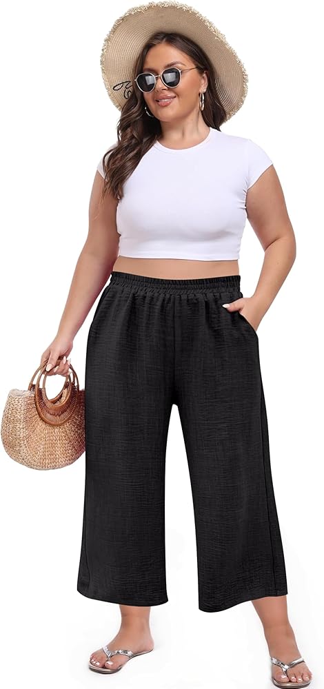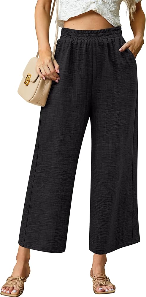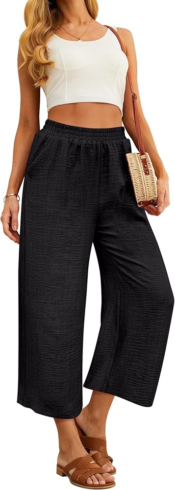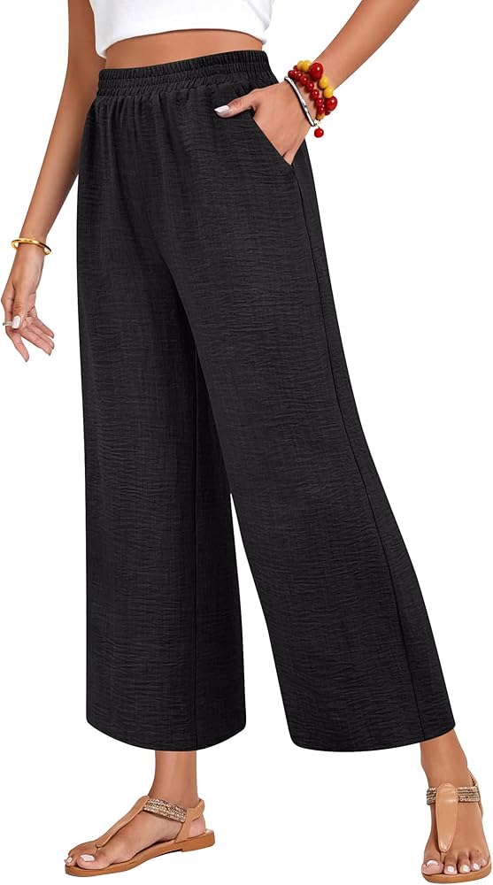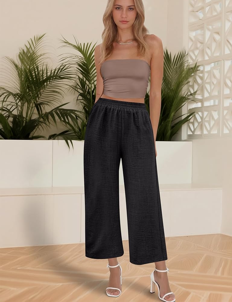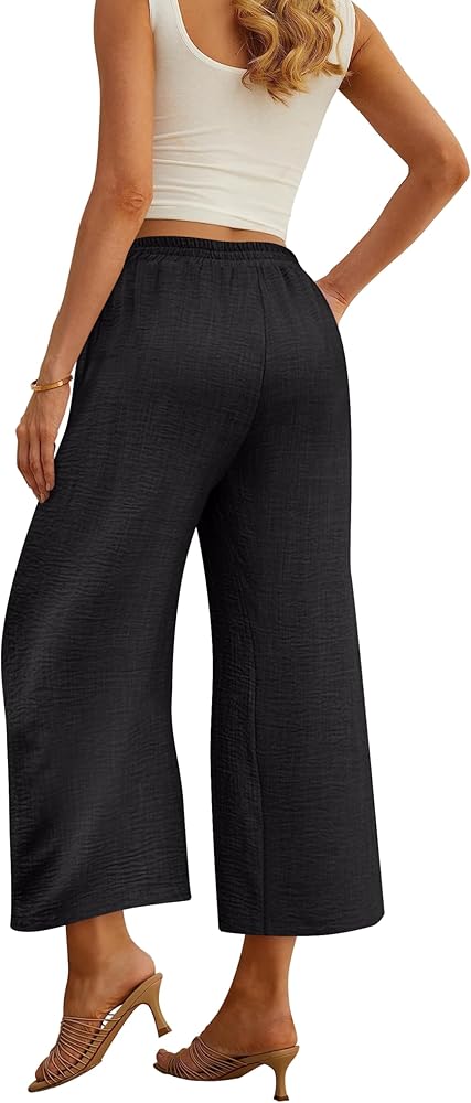 التصميم: يتميز بحزام خصر عالي المرونة، وطول كابري، وساق واسعة، وجيوب عملية، ويضيف التطبيق العملي ويجعله مثاليًا للارتداء اليومي. لا يمكن الرؤية من خلاله، كما أن المقاس المريح جنبًا إلى جنب مع التصميم البسيط والعادي يجعلك تبدو أنيقًا.