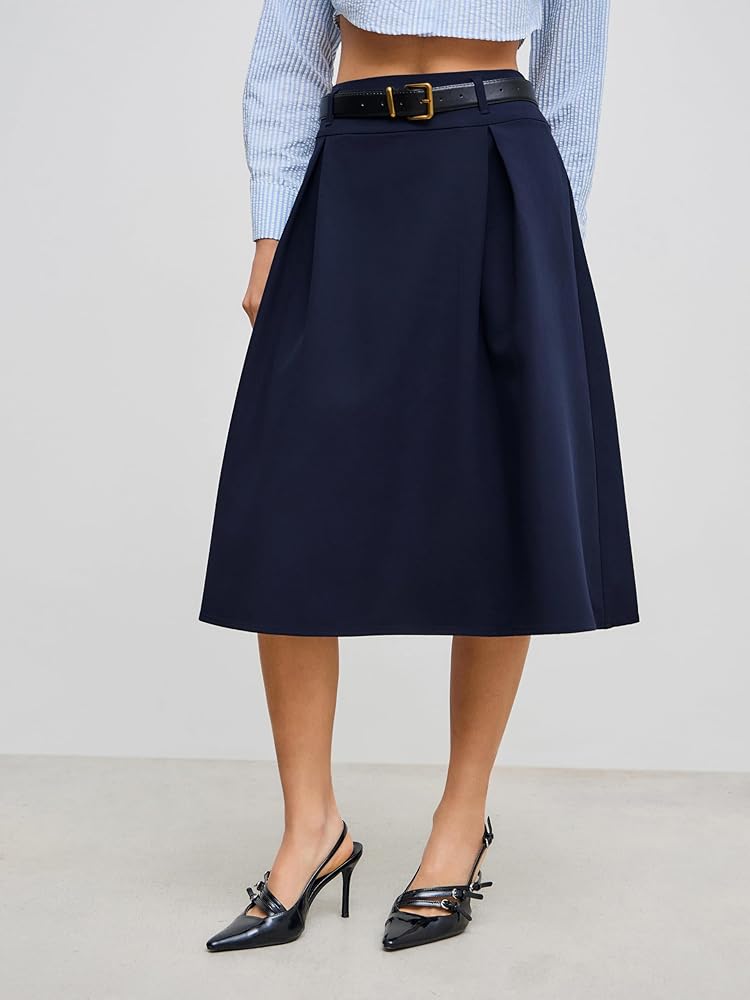 تصميم عملي ومتعدد الاستخدامات: تتميز هذه التنورة غير المبطنة بمقاس عادي، مما يجعلها مثالية لأنواع الجسم المتنوعة وتوفر صورة ظلية مريحة وجذابة. على الرغم من عدم وجود جيوب، إلا أن التصميم يظل أنيقًا وانسيابيًا، مما يجعل من السهل ارتداؤه مع مجموعة متنوعة من القمصان والإكسسوارات، ومناسب لأي مناسبة.