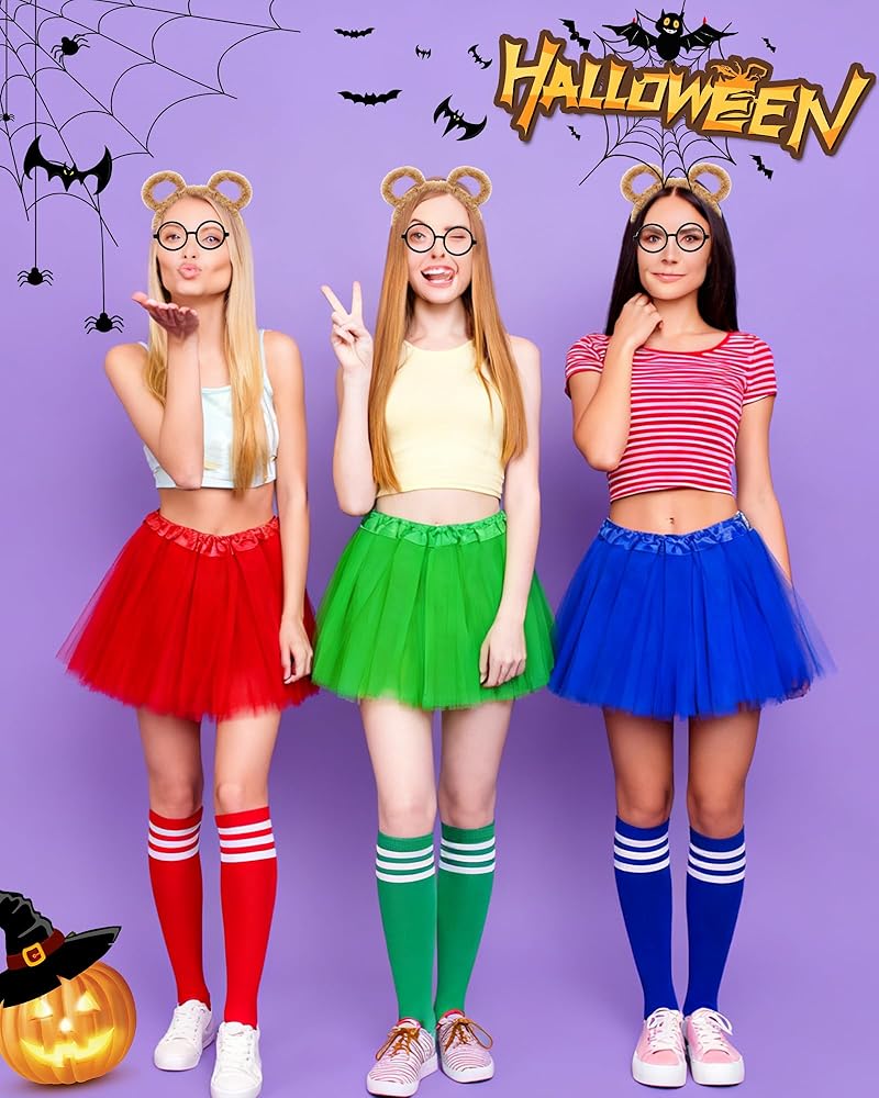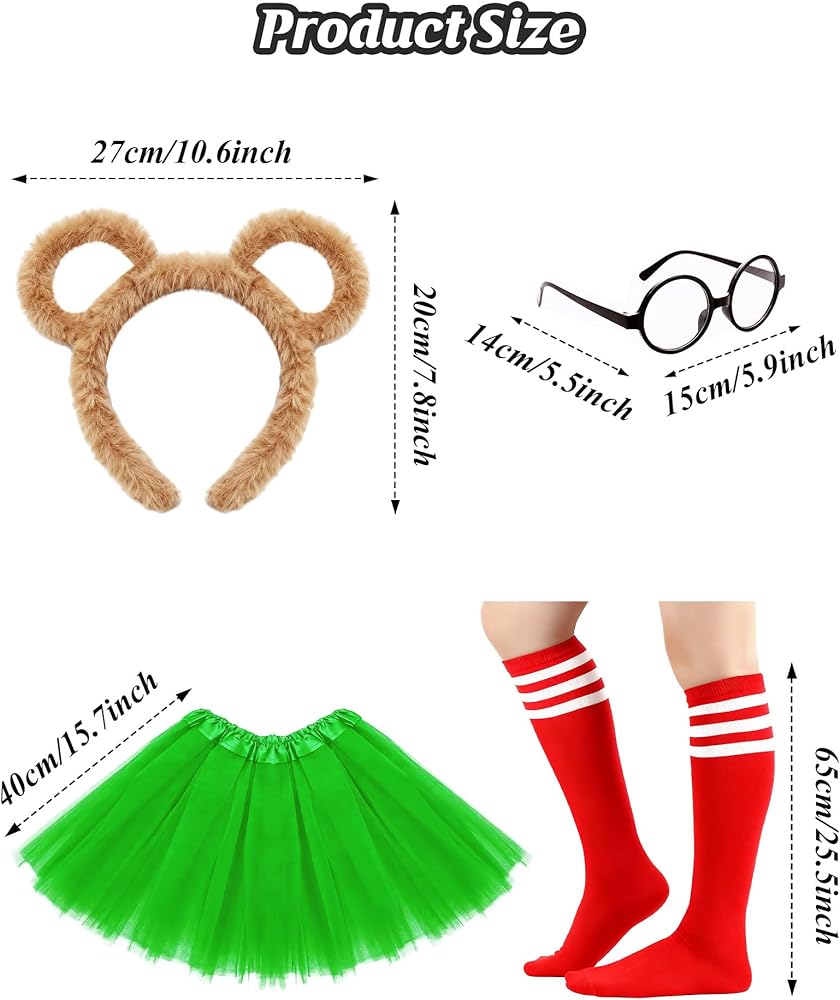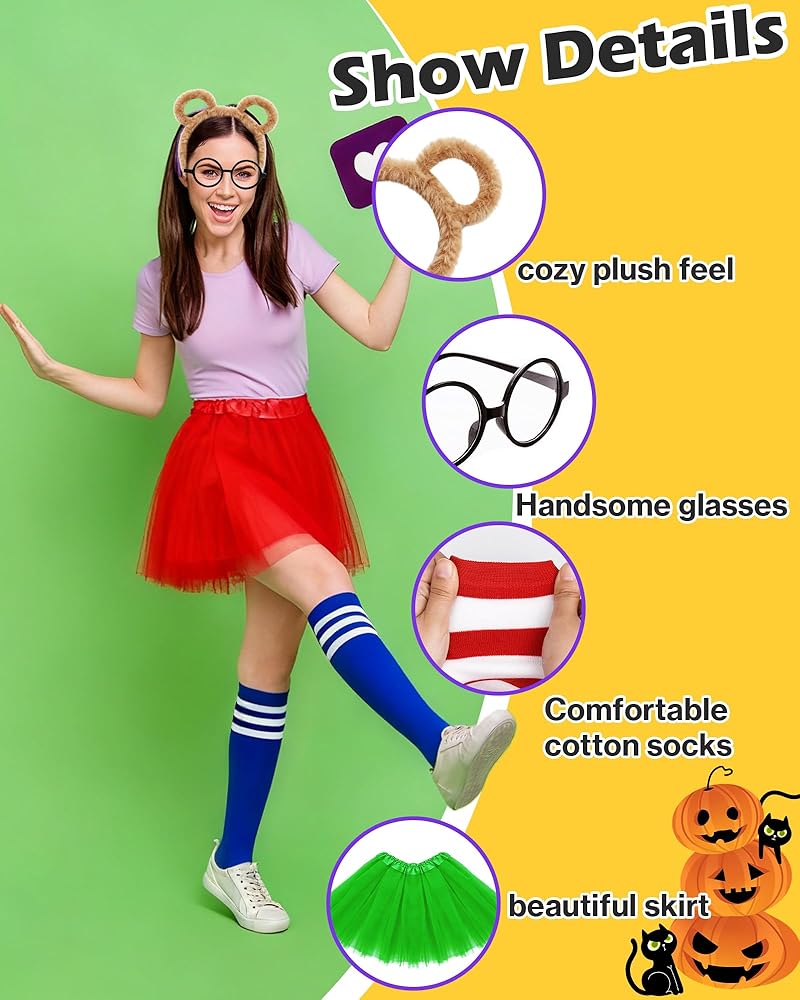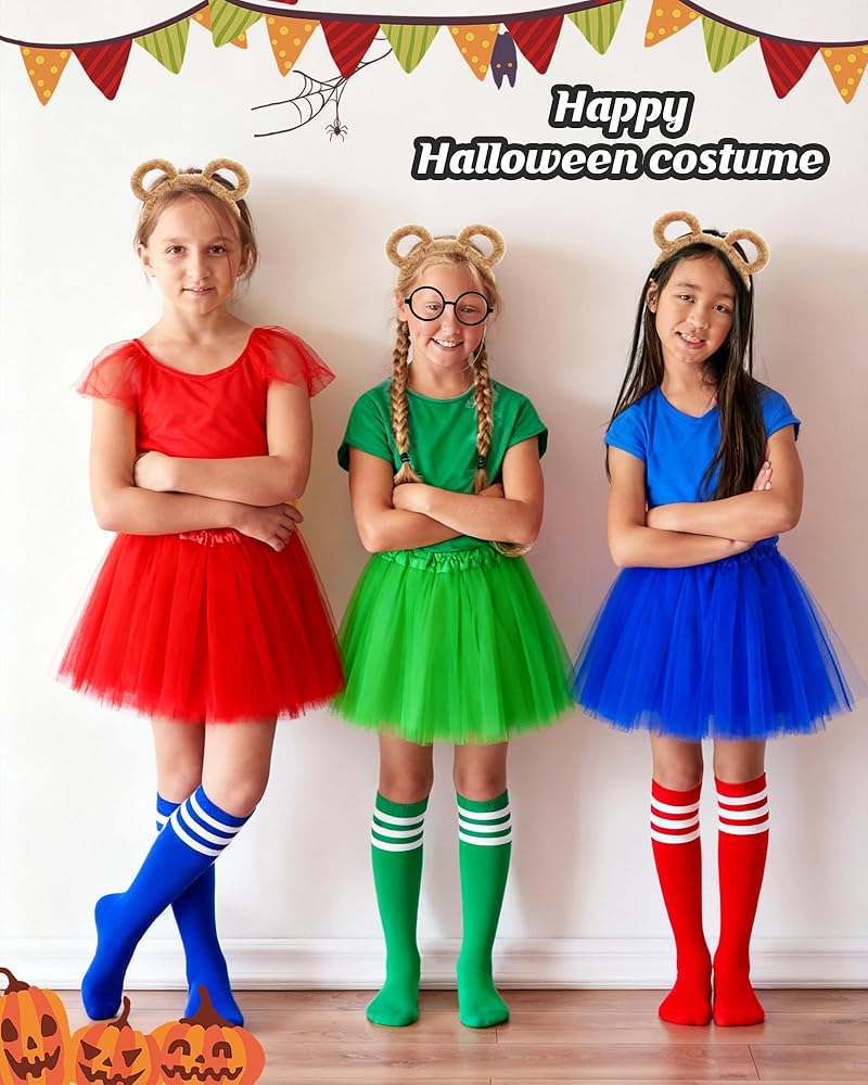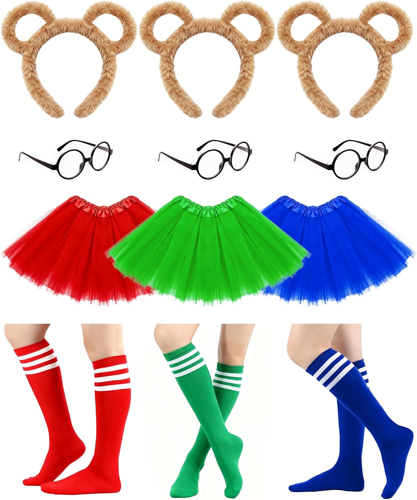 Features: Unleash Your Inner Character with the Ultimate 12-Piece Chipmunk Ensemble! Our deluxe set includes EVERY essential for instant transformation: 3 Black Round Glasses Frame (lens-free), 3 Plush Chipmunk Ear Headbands, 3 Stretch Over-Knee Socks, 3 Flowy Mini Skirts. Perfect for group Cosplay, theater Stage Performances, or stealing the show at Halloween Parties!