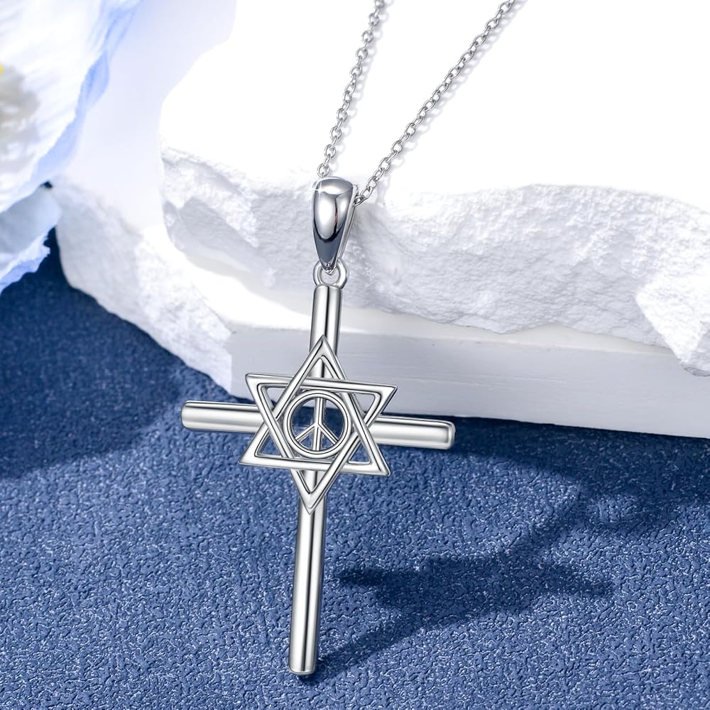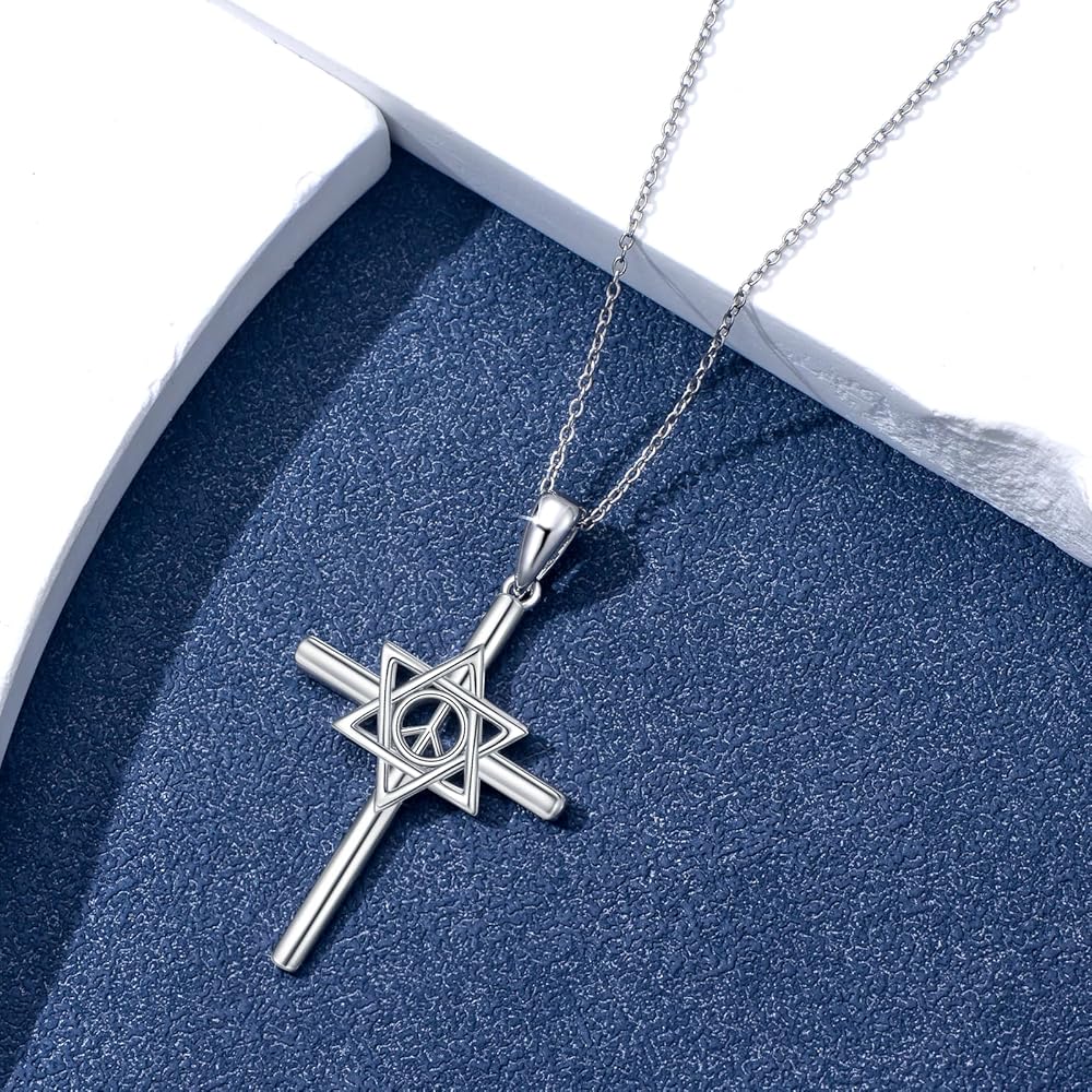 • 【Necklace Details】Star of David Necklace with Cross and Sward Necklace:32mm*10mm.Made with 925 sterling silver, hypoallergenic, not contain any allergic elements.this necklace is not only beautiful but also durable, ensuring they remain a staple in your jewelry collection. The delicate necklace complements adding a touch of sophistication to any outfittication to any outfit.